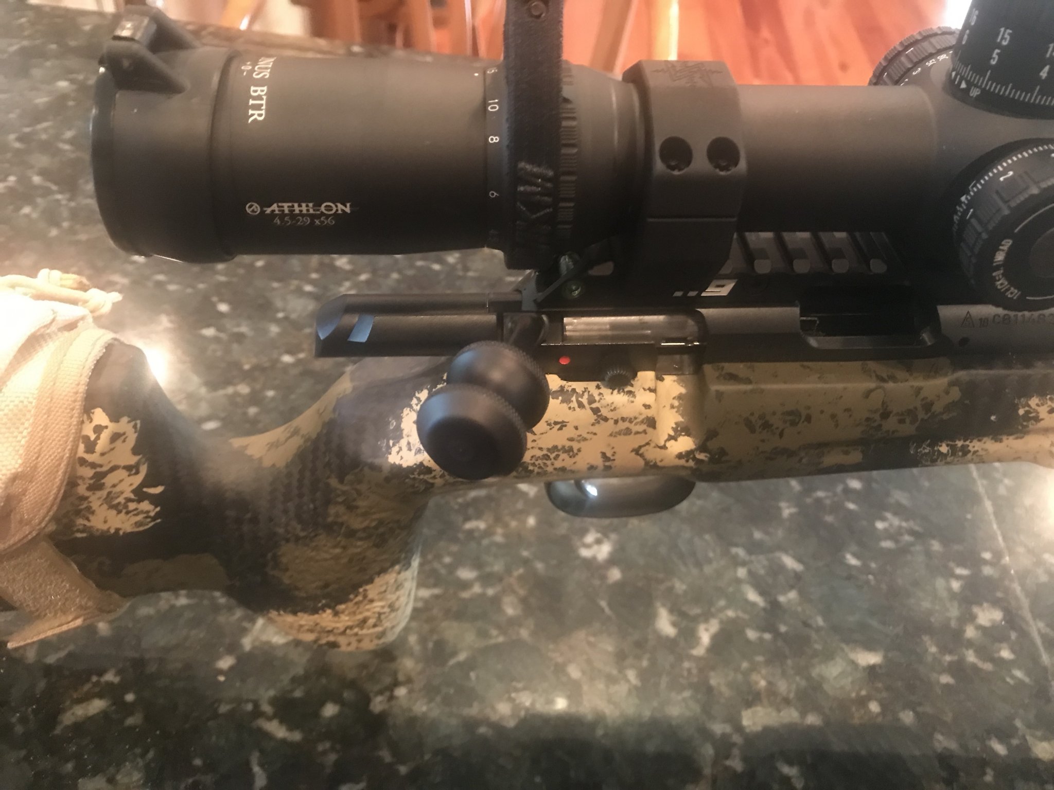 The BScar rail in the photo looks like Bill's standard height rail, although I haven't seen a photo of the elevated one on a rifle yet. The 25 MOA BScar rails I have on my 457 American & varmint MTR look pretty much the same height as the one on Raptor's AT-One. Hope she shoots lights-out for ya Raptor...