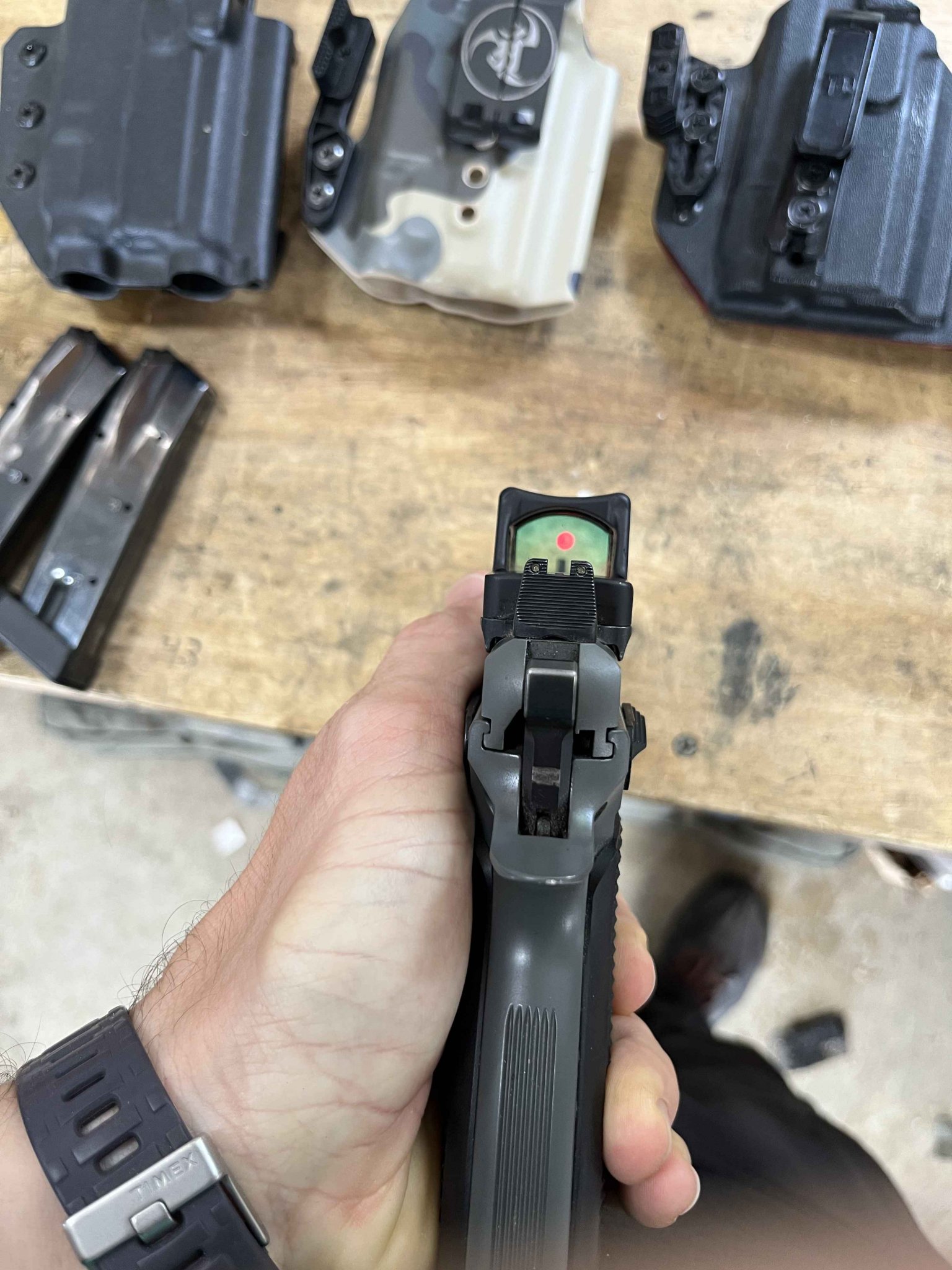 Milled by Primary Machine for the Trijicon rear site optic mount. The whole RMR footprint optic mount and rear sight are all one solid piece.
