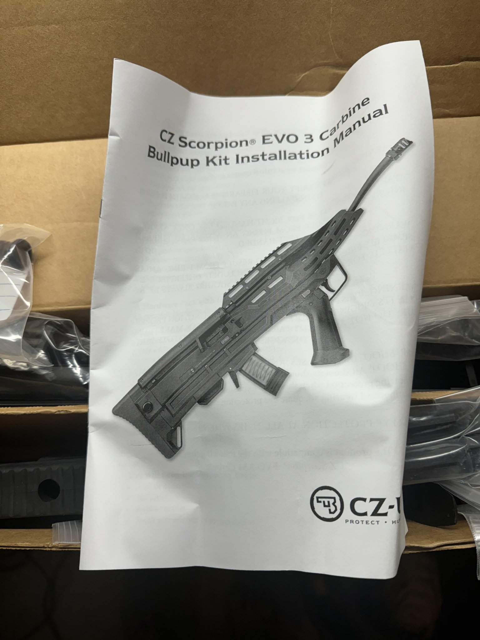 Was going to play around with a bullpup to see if I liked it but never did. So here is a never used CZ/manticore scorpion evo bullpup kit. Looking for $160 shipped lower 48, PayPal ff or USPS money order. Have a spare stock cz handgaurd too that I can through in for $10 if you buy the bullpup kit.