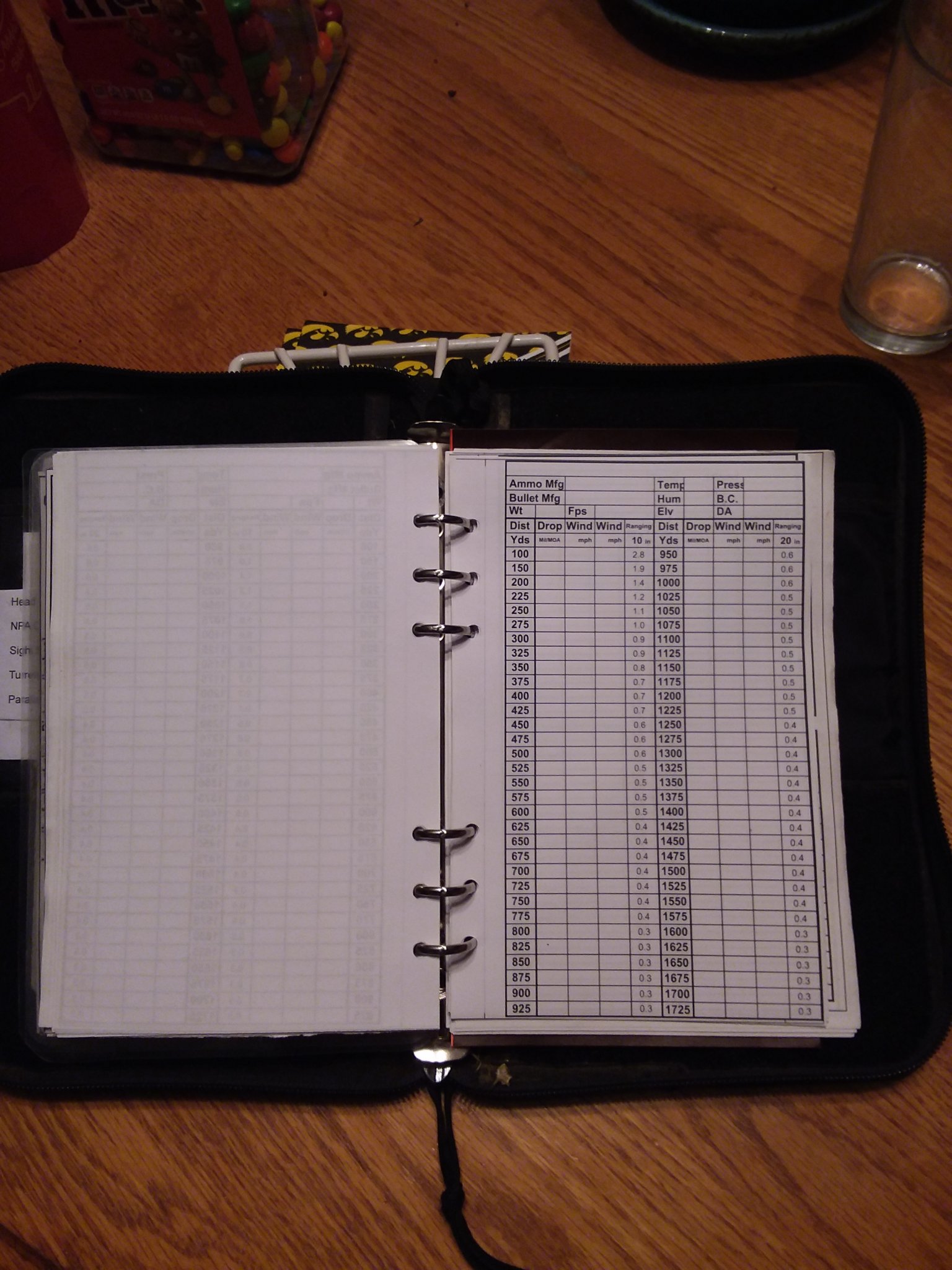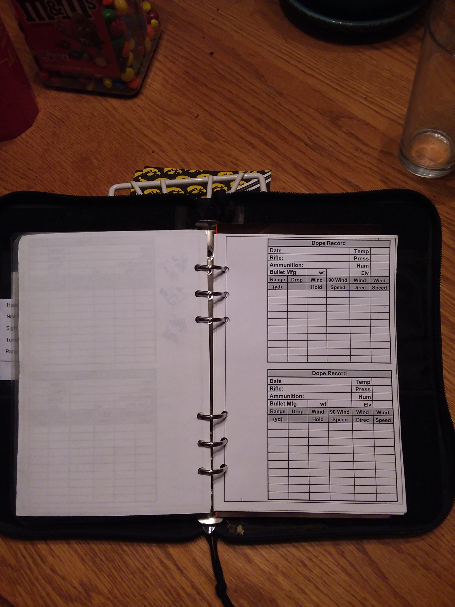 I have put together a couple charts that can help us all make better dope books. For My data book I like to cut these out, laminate them back to back then hole puch the card and place it in my data book. This an 8.5x11 piece of paper that could be folded in half to have all of your numbers.