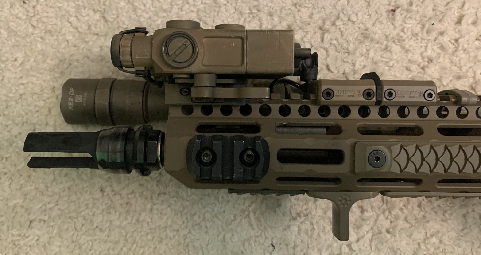 Just picked up a MAWL and am looking to sell my DBAL A3. The DBAL is in great shape and functions perfectly. Package includes Steiner dual lead tape switch, Modlite Modbutton (FDE), and Railscales LEAF sight. Unit has been rattle canned Aervoe coyote, which helps it match much better with Magpul FDE (see photo for color comparison).