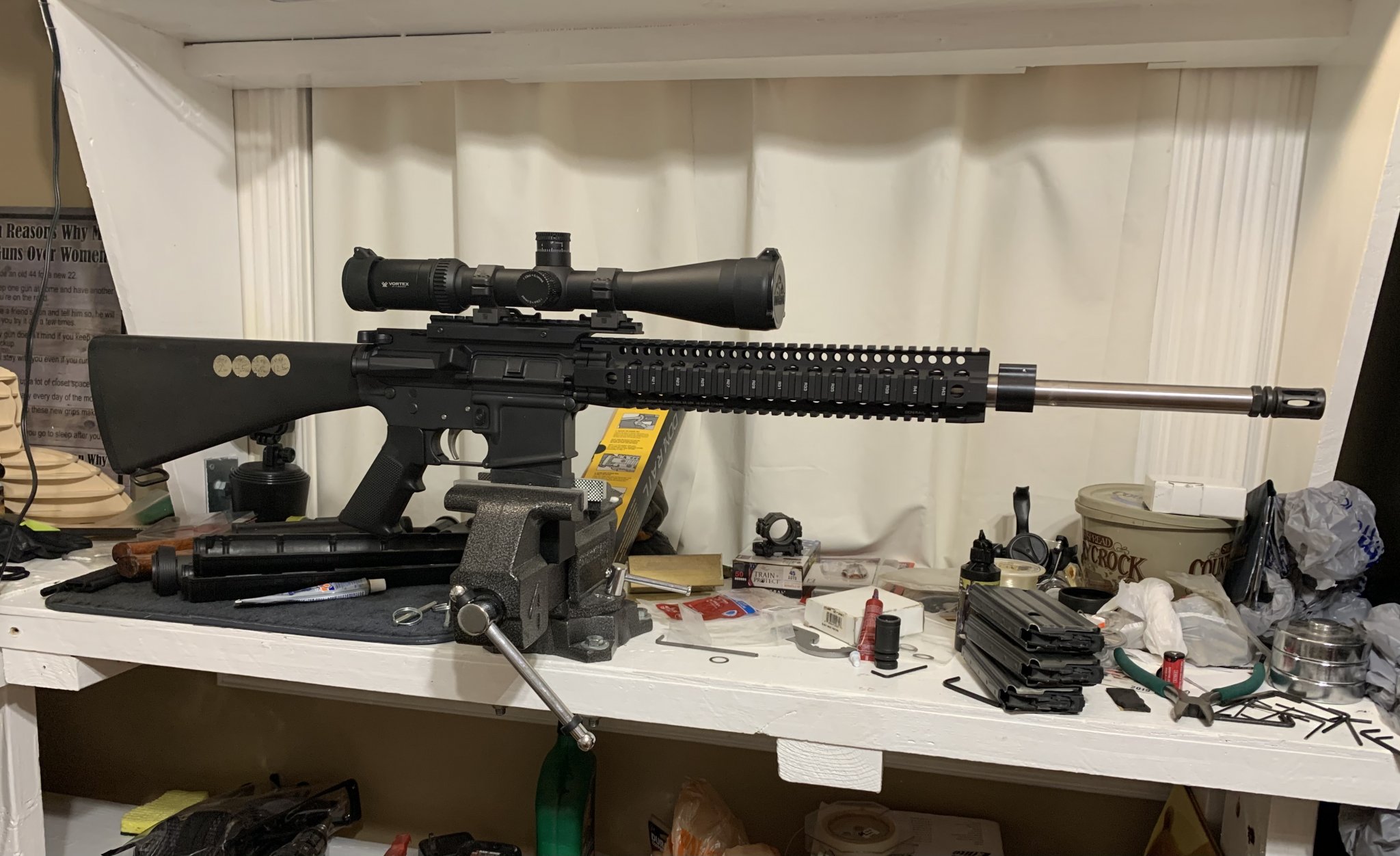 I’m not sure if I’ll pull the Luth AR upper apart or jus build another. My Spike‘s shoots great and I have no problems until it starts getting real dirty. I’m building the second rifle because my wife likes to shoot against me. She’s a very good shot and I’ve cooked her more than one dinner and cleaned the bathroom on more than one occasion after she won the world domination shoot off.