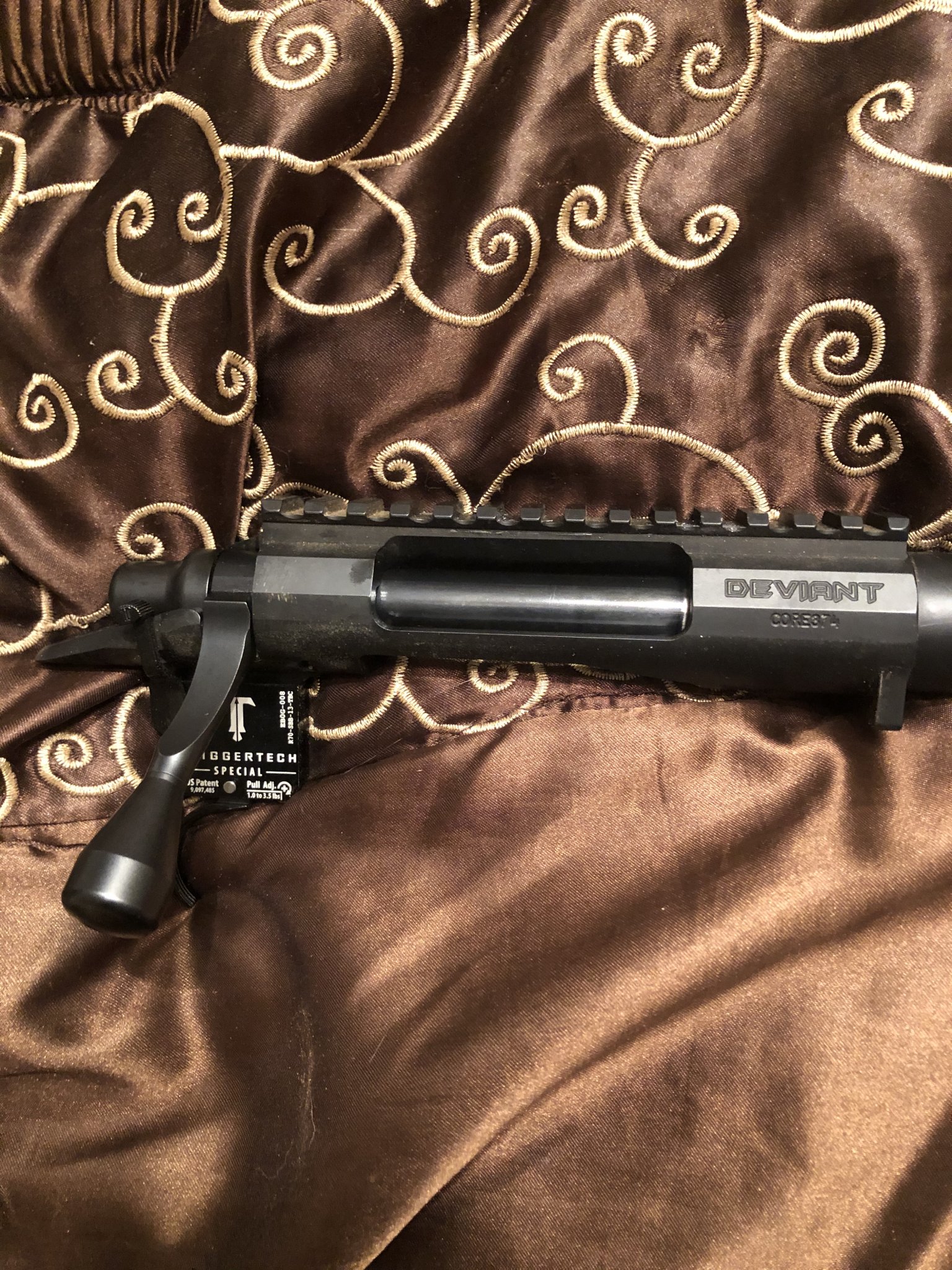For sale Defiance deviant elite action with controlled round feed barreled action. Chambered in 6.5 creedmoor with 1621 rounds through it. Comes with triggertech special trigger set at 1lbs and APA little bastard brake. $1,350