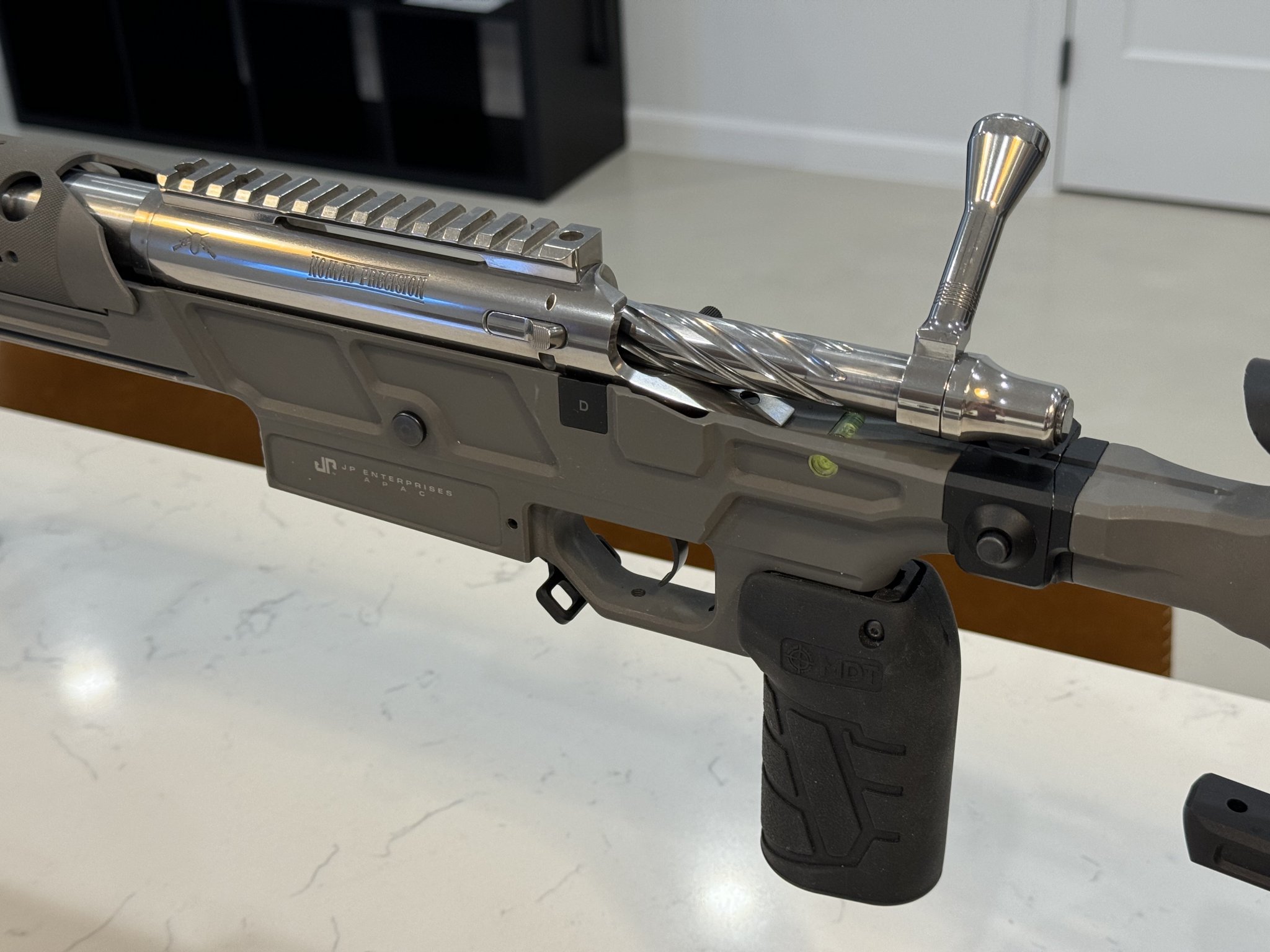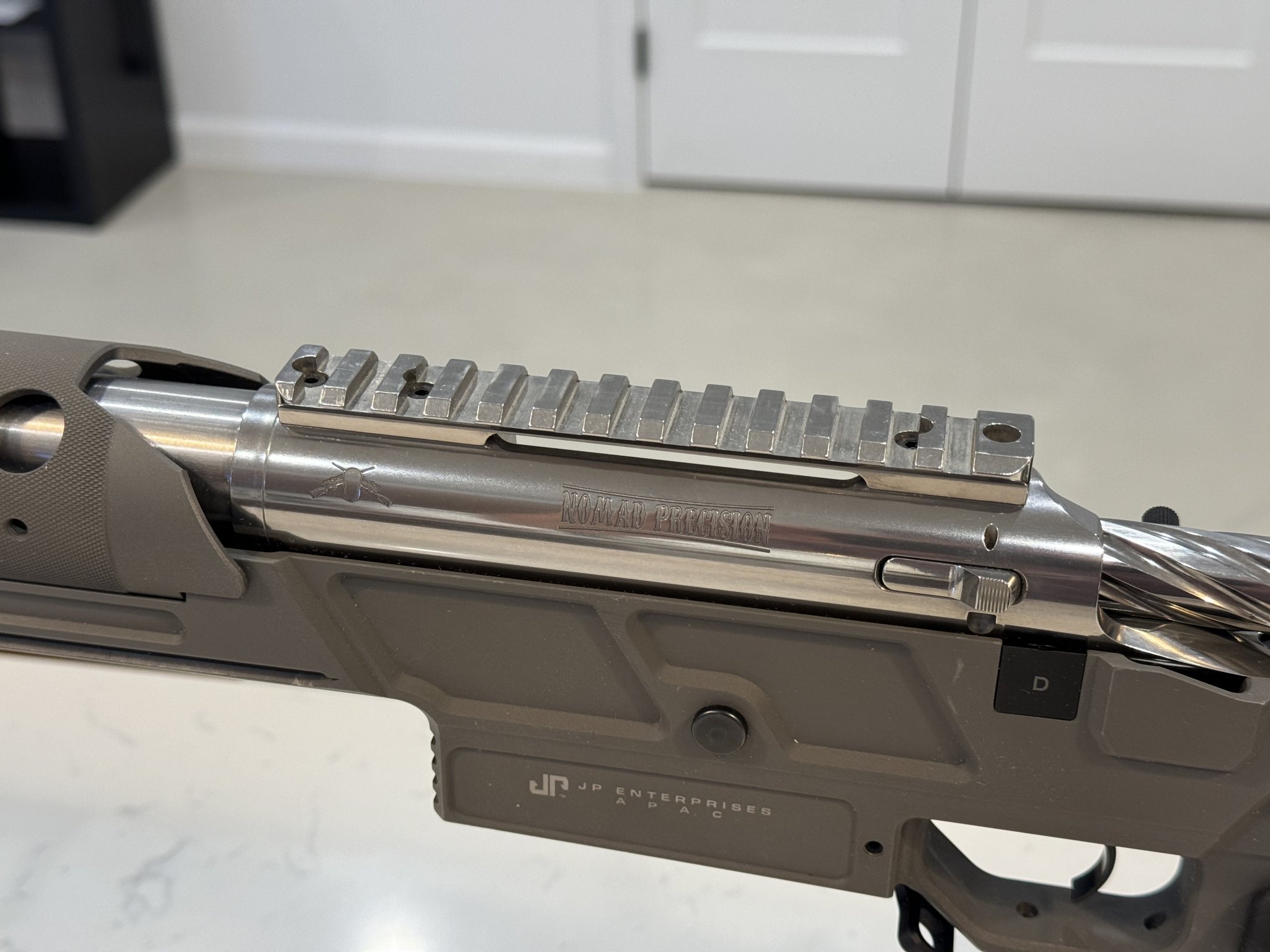 Nomad Precision-branded Defiance Tenacity action, 223 BF; Hawk Hill competition contour 26" barrel, 7.5 twist; Triggertech Diamond curved shoe trigger; JP APAC folding chassis with MDT Elite grip, JP APAC bag rider, and SAP 2-round quiver. Load it up and shoot it.