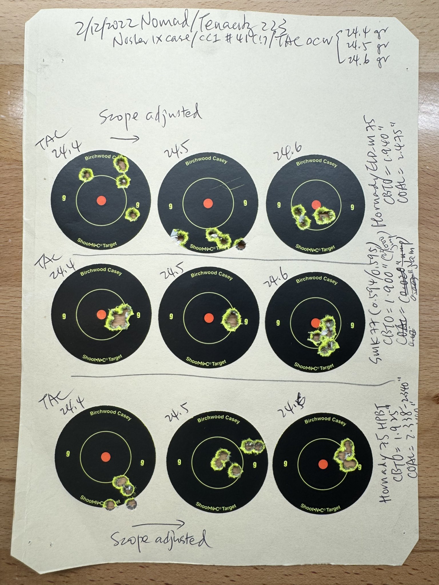 I bought this from another Hide member a while back, I believe there was (I believe) about 1100 rounds on the barrel. I put another 400ish on it, mostly Hornady factory match stuff, but I also took this rifle with me to a three-day LRP class in Colorado, having never shot past 100 yards before in my life. Shooting the instructor's handloads with 75gr Hornady ELDM I was truing out to 1k on the second day, and after I had my data trued up I was nailing first and second rounds hits all the way out to 1200 yards, with this little ole 223 Remington. The previous owner said this thing loved SMK77s (see pic) and Hornady 80s and 88s too. I never got it together to reload for this gun but it's definitely capable of handling the longer bullets if you can reload. PO included his load data and notes and I see CBTOs of 1.940 in some cases. I was getting 2940 FPS from this gun with 75gr ammo on my 3/4mile day (see photo). It's just an awesome gun and a lot of fun.