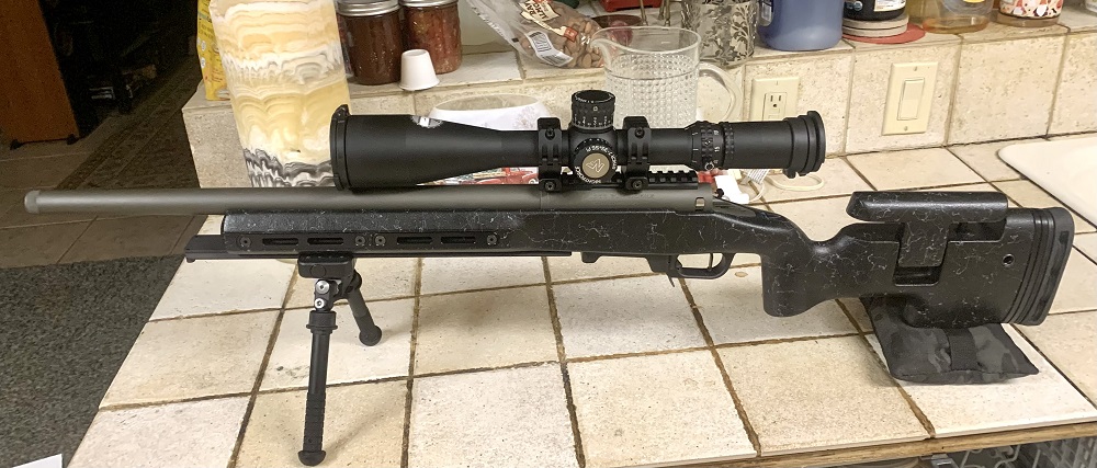 The workaround was simple but expensive, four more 10 shot aluminum magazines. The added weight is no problem, perhaps a benefit for supported shooting. With a NF ATACR 7-35 x56F1, the total weight of the rig is 17.4lb. It is a brute.