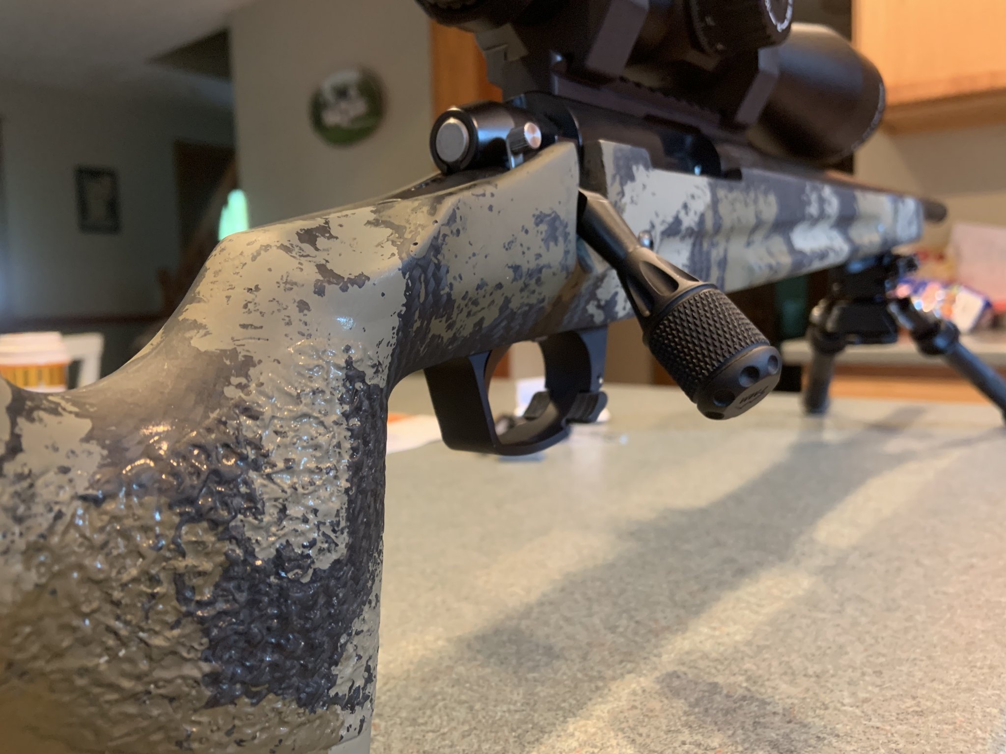 21 days from order to ready that's insane awesome service and of course the rifle is beautiful. 18 inch bartlein, burnt bronze cerakote with a green and black splatter adjustable. Only thing missing is my atlas and that's because I bought the wrong size rail