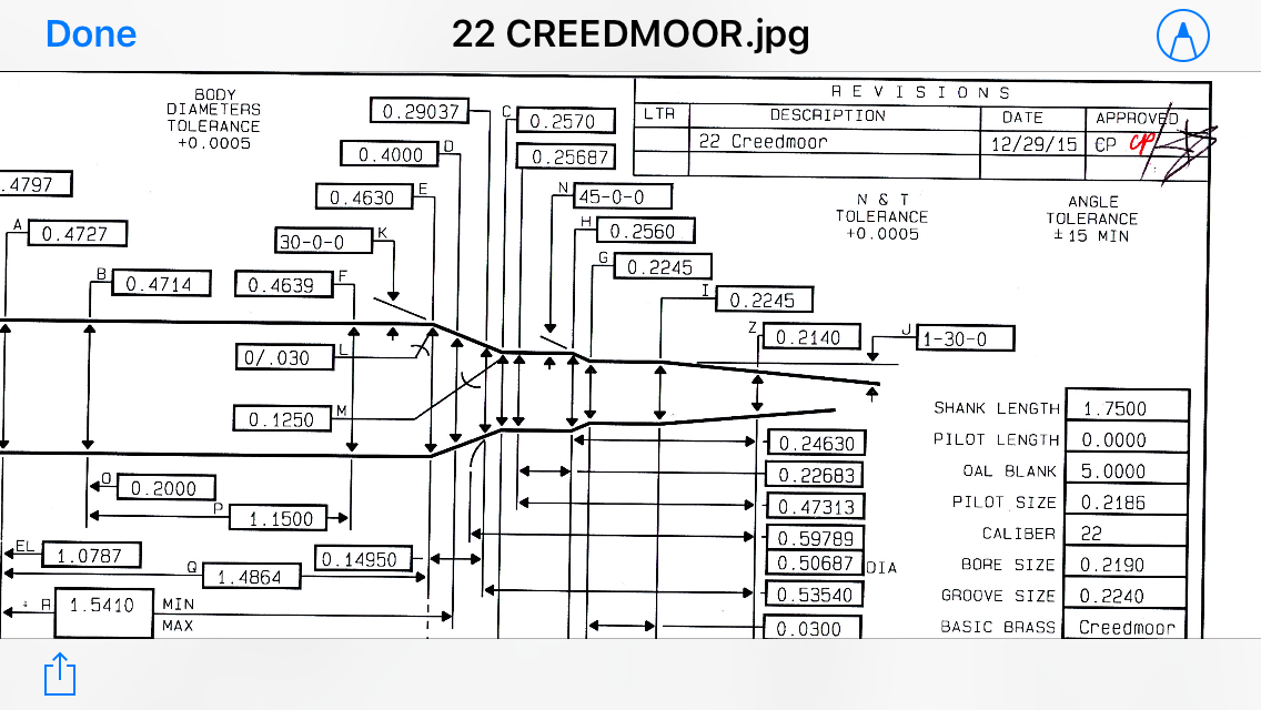 Brand new 22 creed reamer, jgs, HSS, changeable pilot, spec sheet attached, enough freebore to run 90’s, 6mm creed brass no neck turn, never used, plans changed 170$ shipped, paypal FF