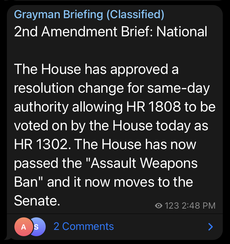 Your faith in the senate is much stronger than mine. As mentioned all they need is 51 votes. They have let us down a lot quite recently. I can only hope you are right. Sure. We will get to keep ours, for now. But I assure you the next Gen won’t be able to. And make no mistake, this bill includes semi auto handguns to a degree as well. They are building on the momentum of the red flag laws. If you remember if they passed that they weren’t coming after your guns. They are coming after them all, little by little. Next will be the hunting rifles so many hold dear. Then finally shotguns and revolvers.