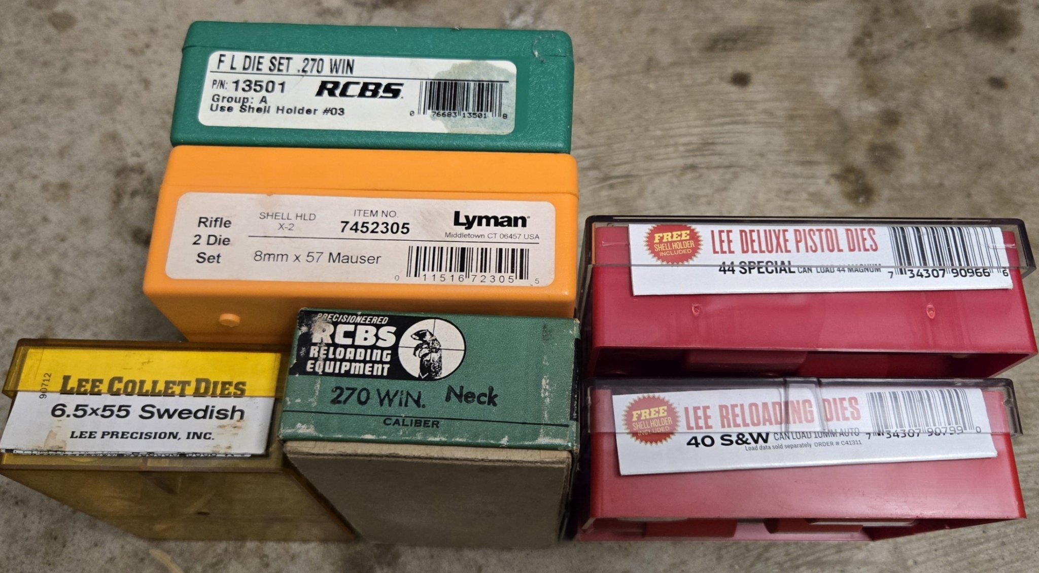 The 270 neck die is really old. 270 full size dies are second oldest and probably have a few hundred rounds loaded. The rest are in great shape with little use.