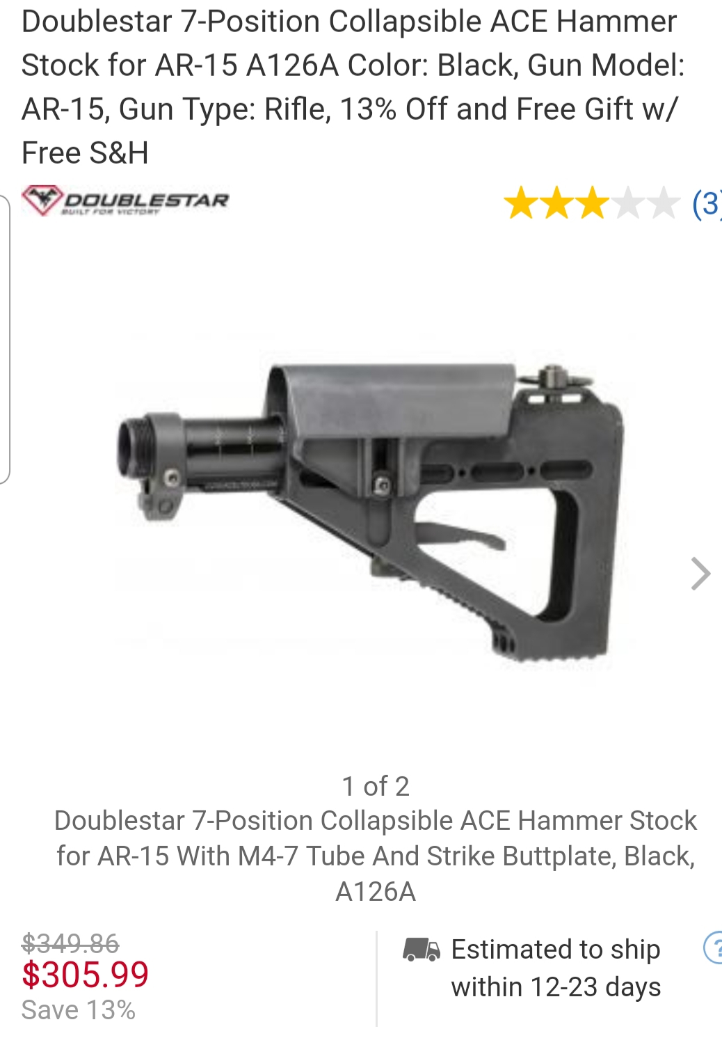 I have a used but never abused ACE hammerstock solid billet stock, heavy duty 7 position extension tube, adj cheek riser, one of the strongest AR15/10 stocks on the market, would make agreat stock on a chassis too, sells for $300 has the added pad $20, I have no need for this stock perfect for a matched billet cerakote rifle, asking $160 plus $8 shipping will post pics tonight