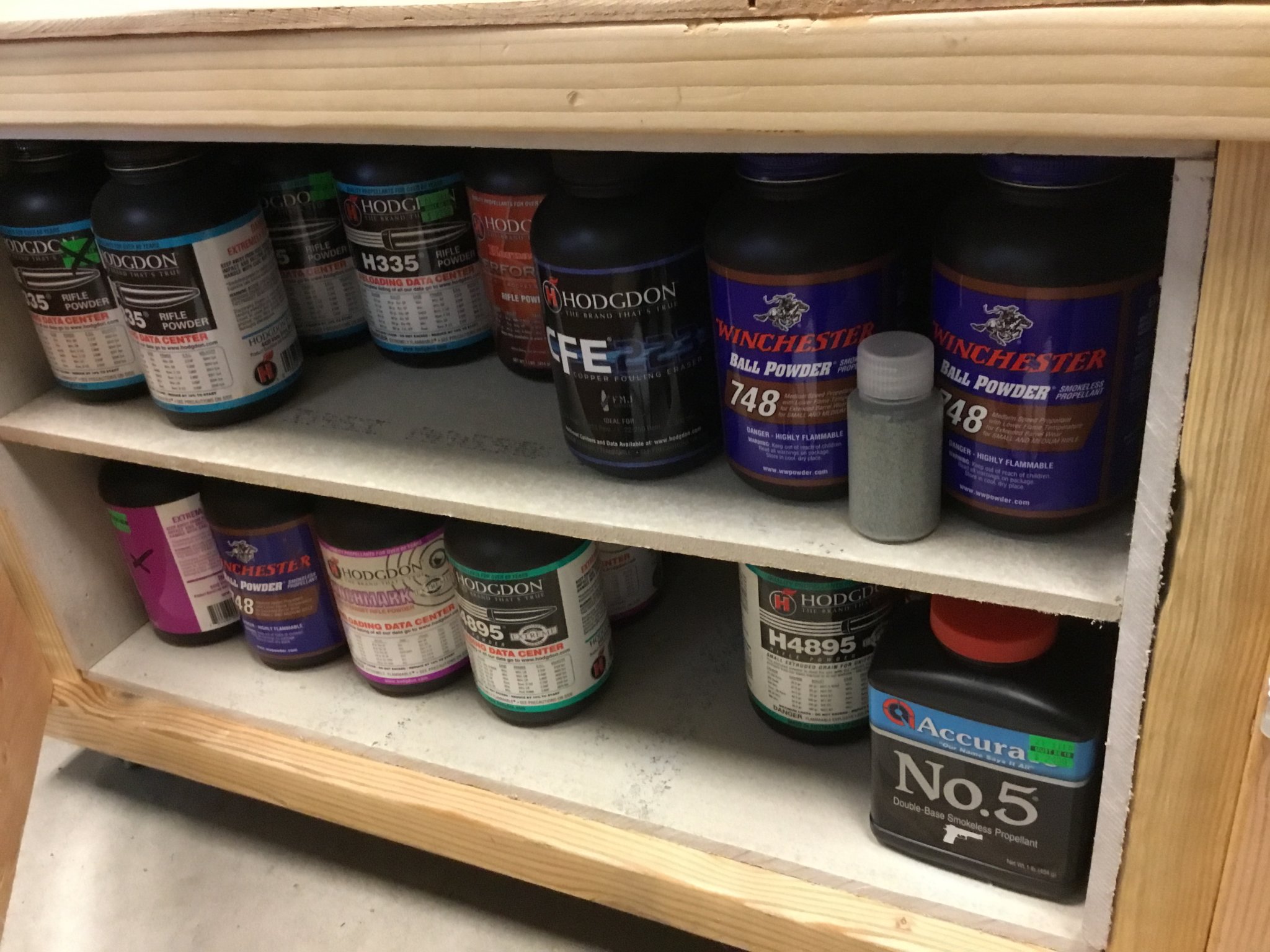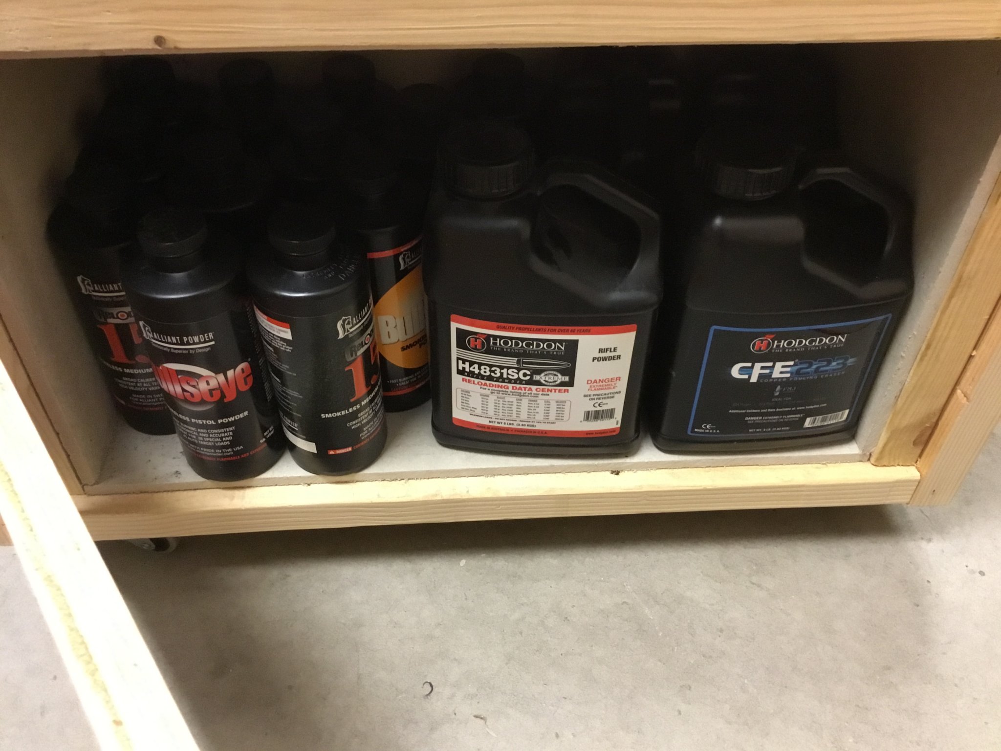 A 1“ nominal thick wall wood cabinet is actually required by NFPA for >20 lbs powder. Not sure for who/when that would apply, but it makes me feel better.