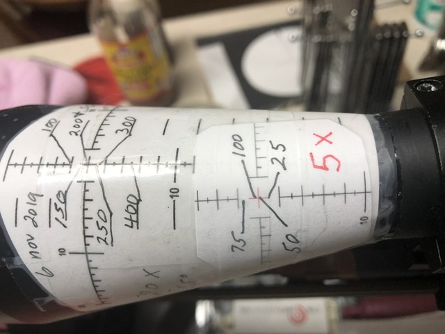 At 5x, my 75 yd and 100, look possibly reversed, it was misting when i hurriedly did my testing and its raining now or id just go back and test.