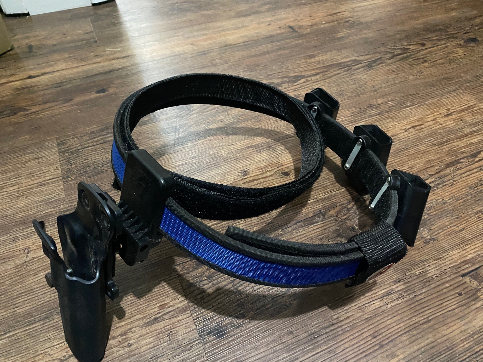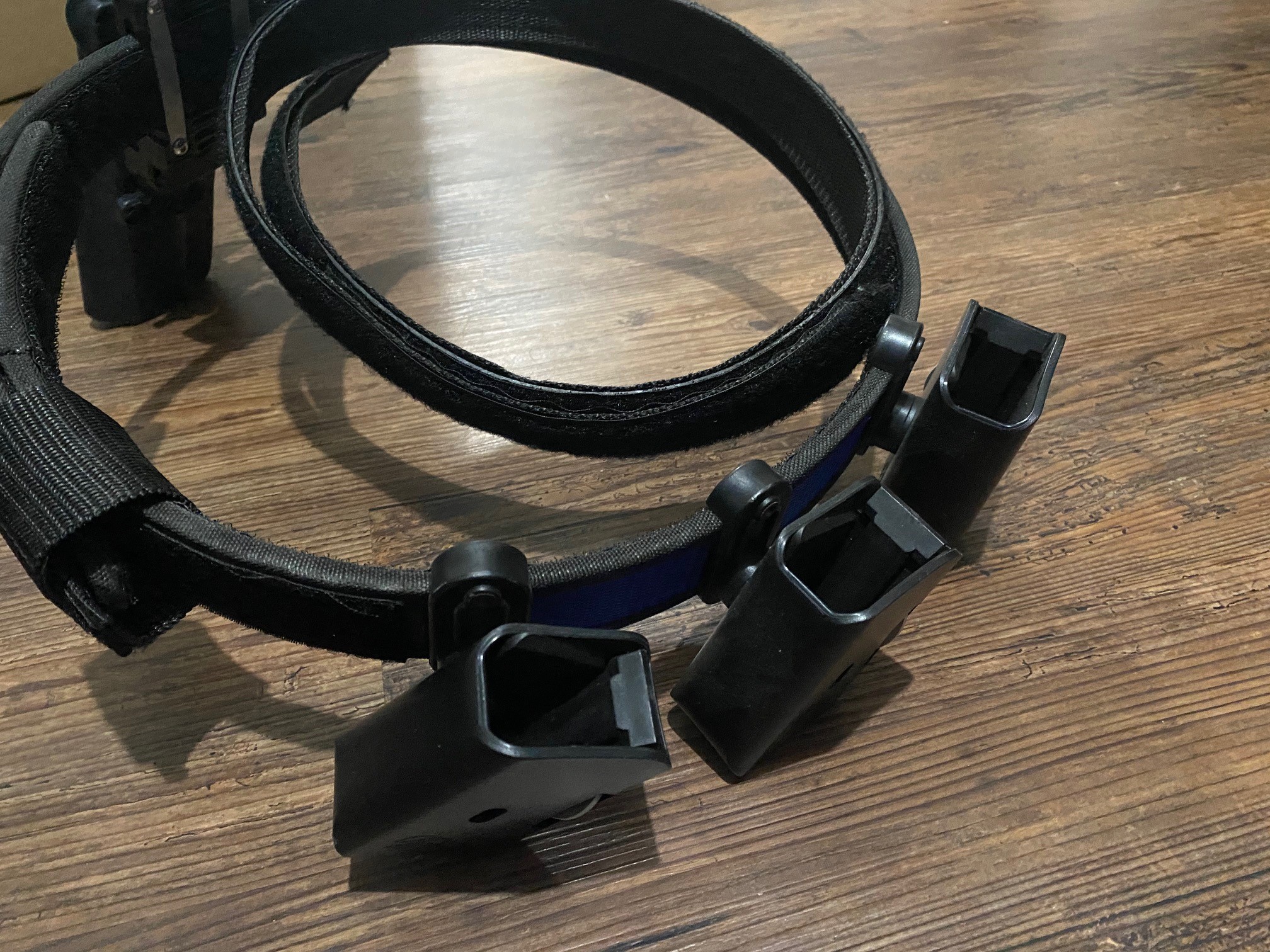 selling a double alpha pistol rig set up for glock 17. inner belt. Three mag pouches, holster, extra pouch gear for other pistols included.