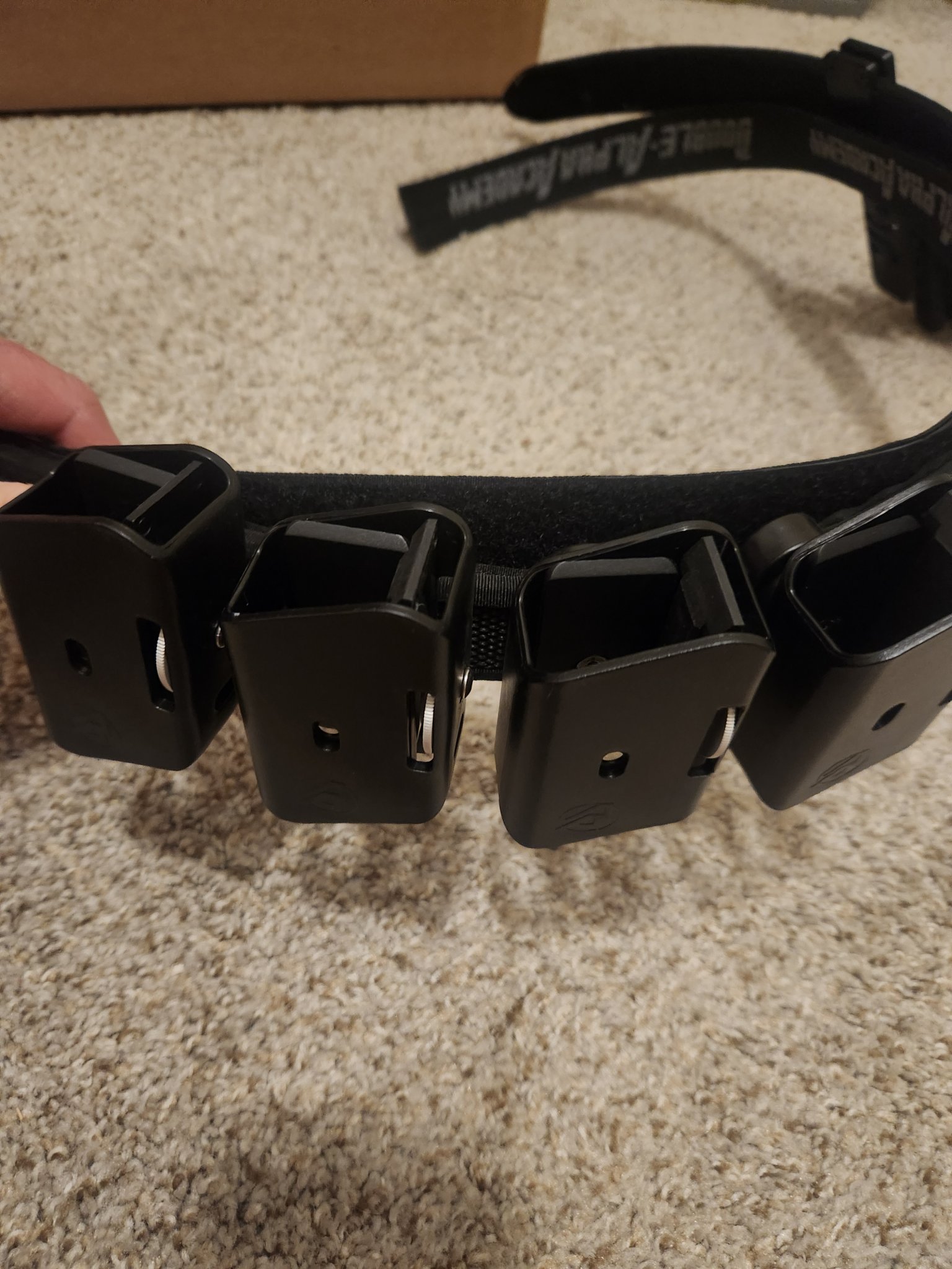 Accessories Double Alpha Belt, mag pouches, and red tactical holster