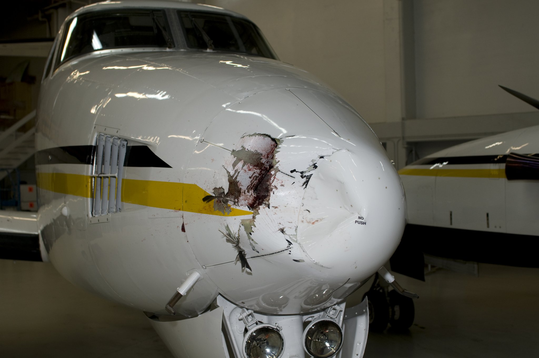 It sounded like someone hit the plane with a baseball bat, hard...REALLY hard. I've hit a metric fuck ton of birds in the last 25 years, but that one did the most damage. As "luck" would have it tho, that's prolly the best place to take a hard hit like that. Any higher and wouldve come thru the windscreen, left or right, into the engines.FMR! That's insane....or to me....a non pilot....that's insane. But I guess at 200 knots that fluffy little 4lb meat sack has some serious kinetic potential. Glad everyone was ok. What did it sound like when it happened?