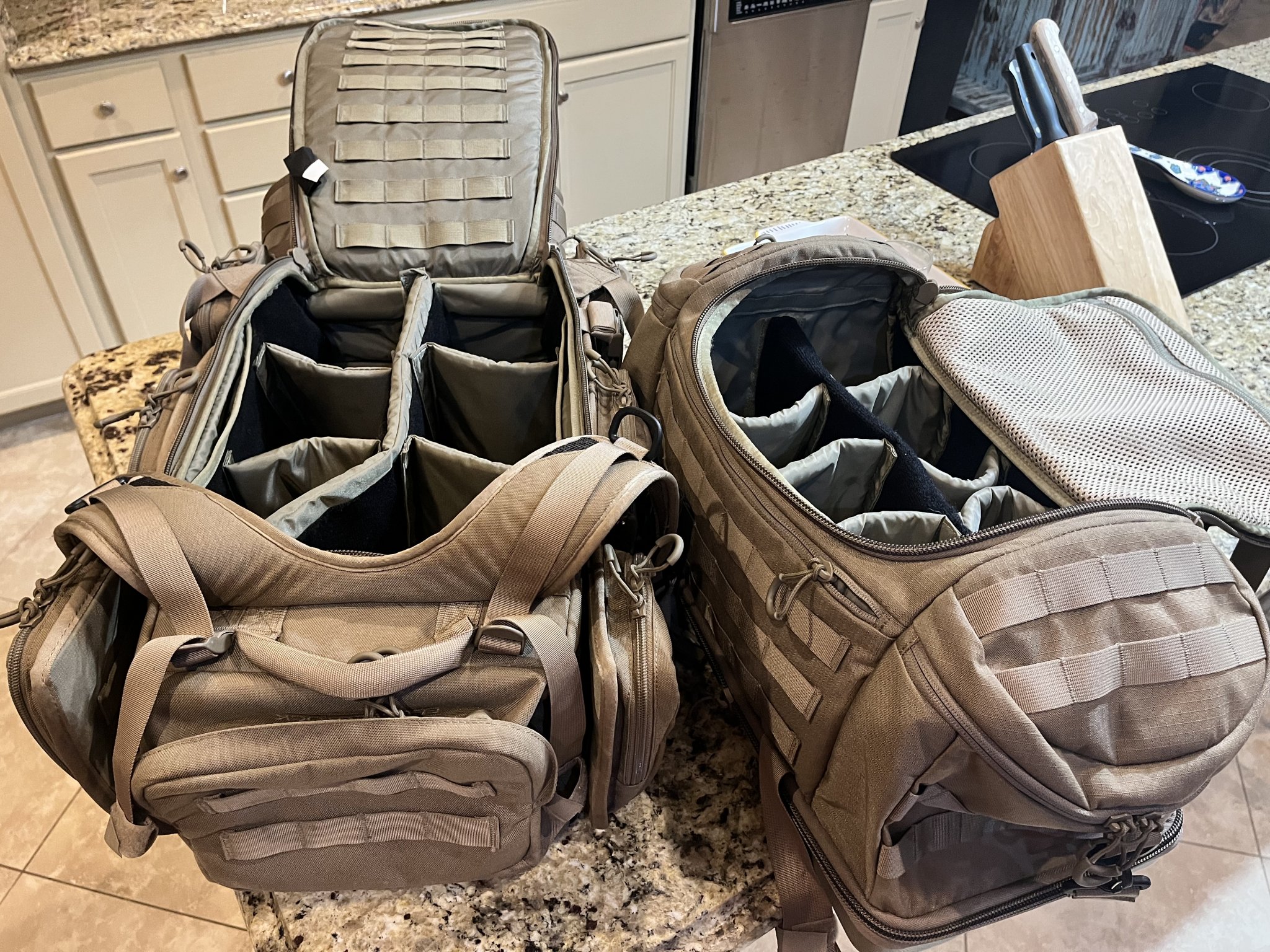 3. Wiebad Tackpack FDE color. Super cool backpack in good shape but the top carrying handle was cut. I repaired it at the range with a zip tie. Someone could make this like new again with some TLC.