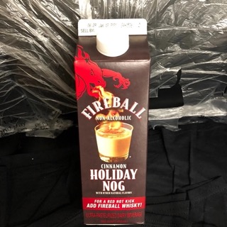 Its got cinnamon oil in it, its fantastic. Just a bit of spice.Fireball?… Ugh. I mean, I’ll try it. It is eggnog,after all, but I’m probably not going to enjoy it very much