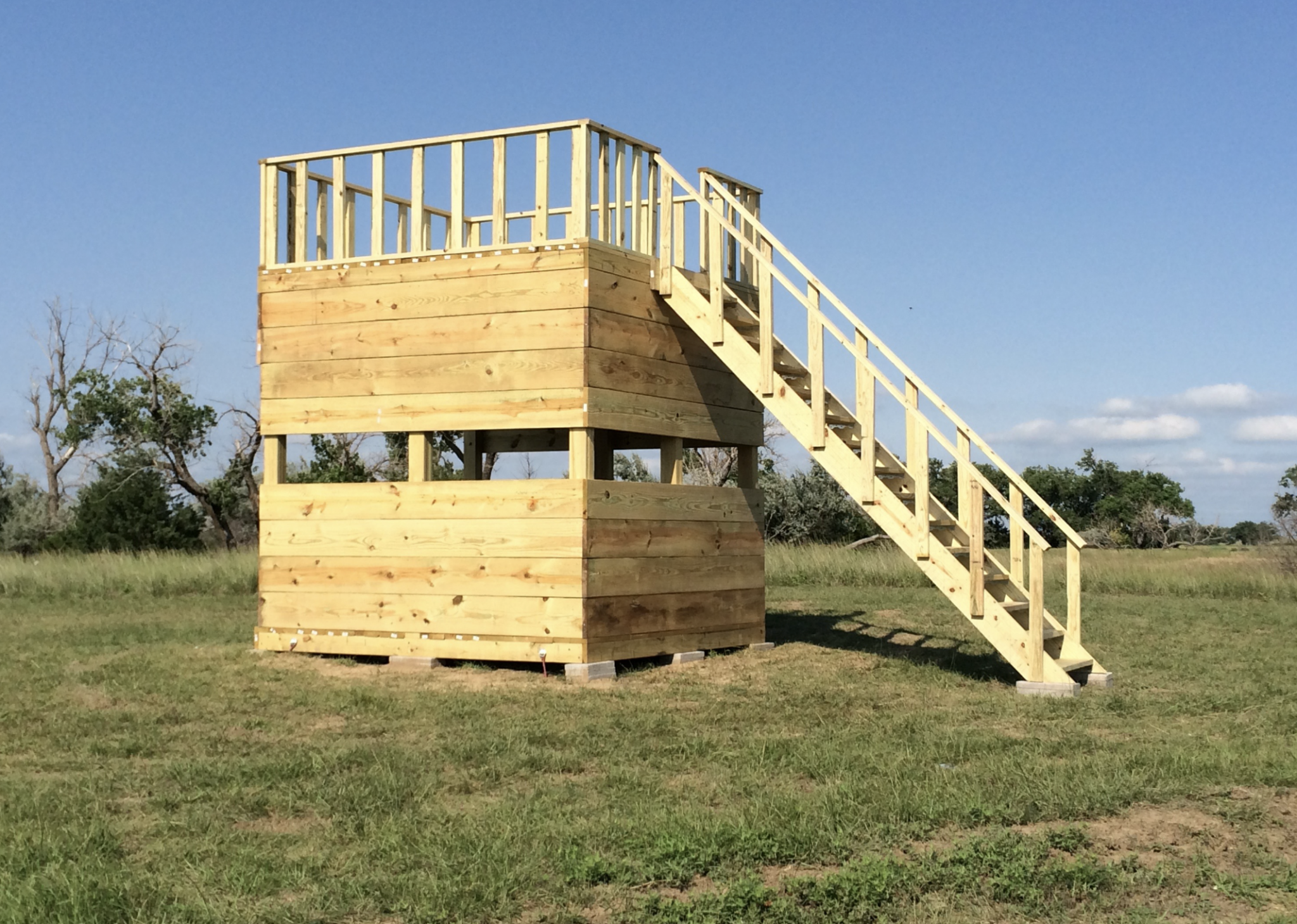 I'm looking to build a 12'x12'x5' elevated shooting platform, basically an elevated deck. I've been hitting the google pretty hard trying to find a design I believe would be strong and stable enough to accommodate 3 - 2 man shooter teams without moving around. I've not found anything I'm crazy about yet. Looking for plans or advice, thanks in advance!