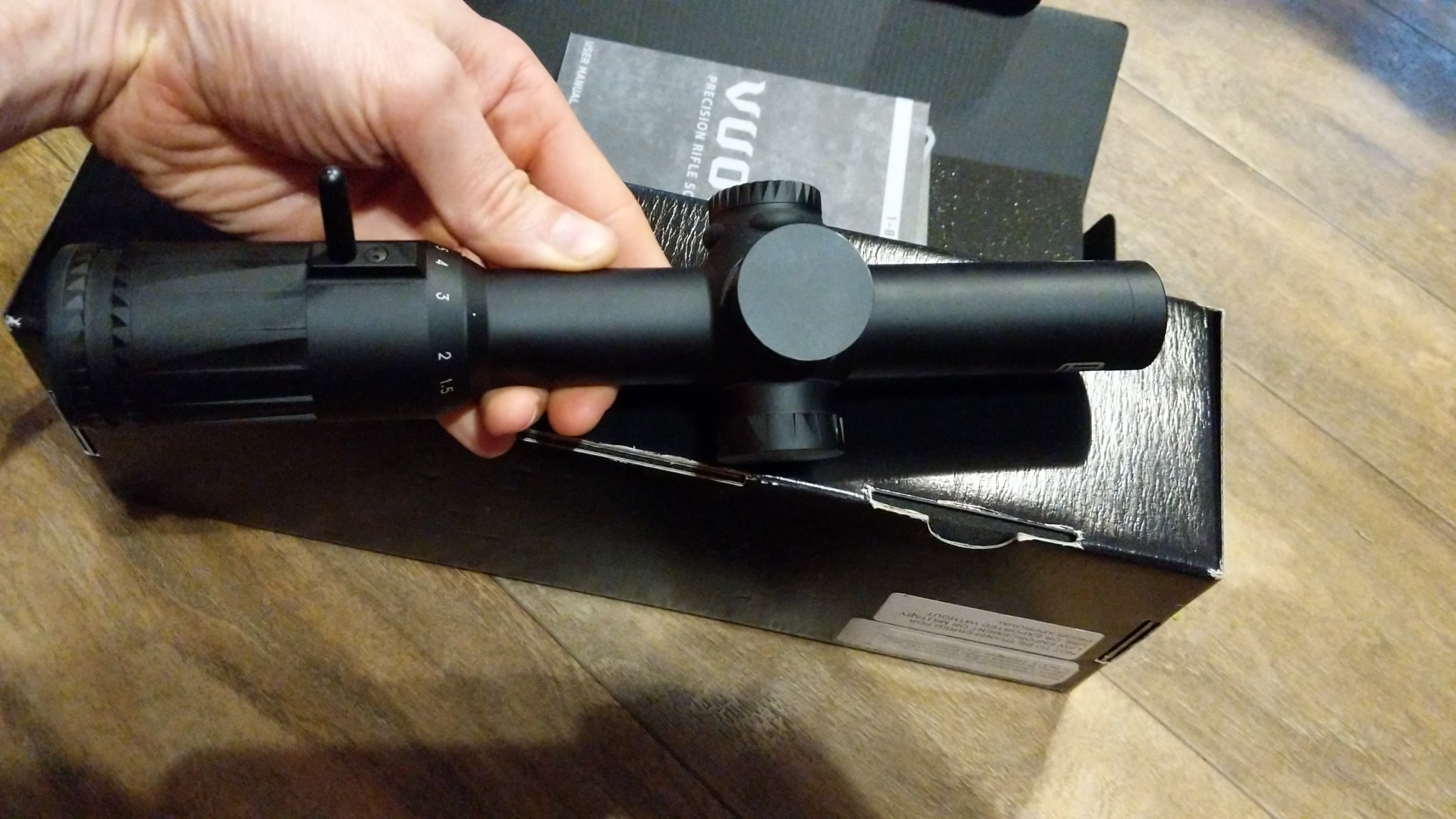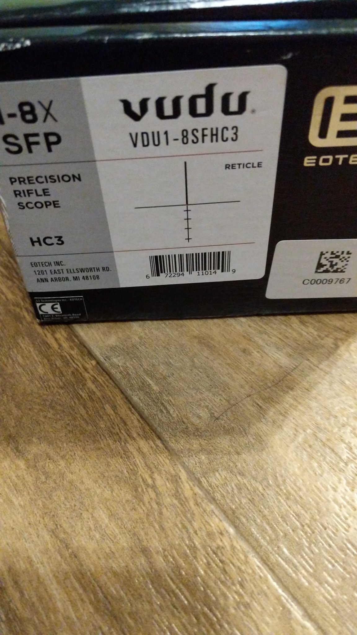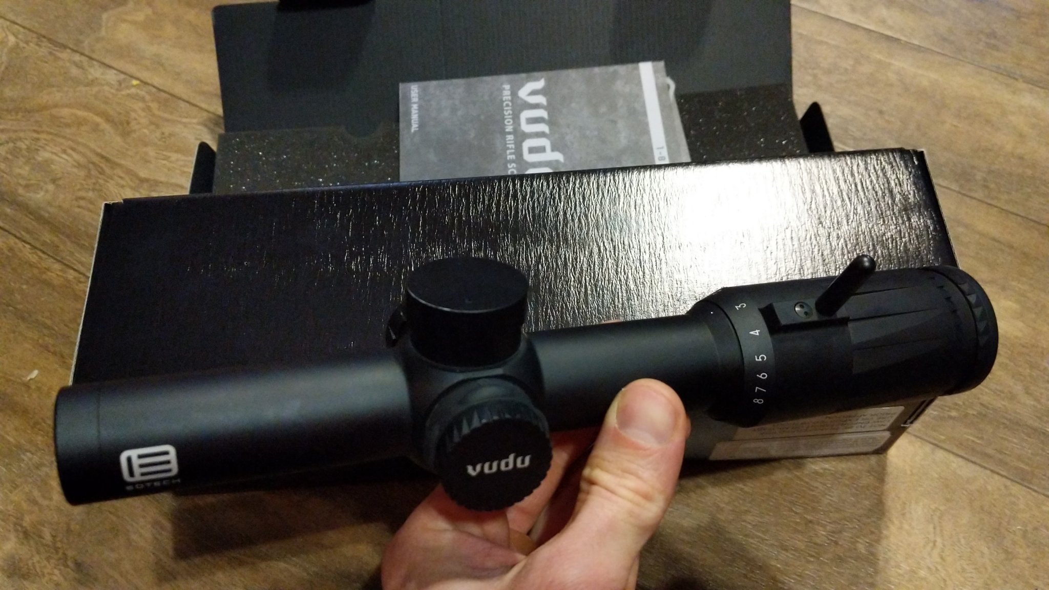 Excellent condition Eotech Vudu 1-8 SFP HC3. Minor wear in the turret caps. Overall in Excellent condition. Glass is flawless. Comes with box and owners manual, decal, etc. Eotech lifetime warranty. 850.00 shipped.