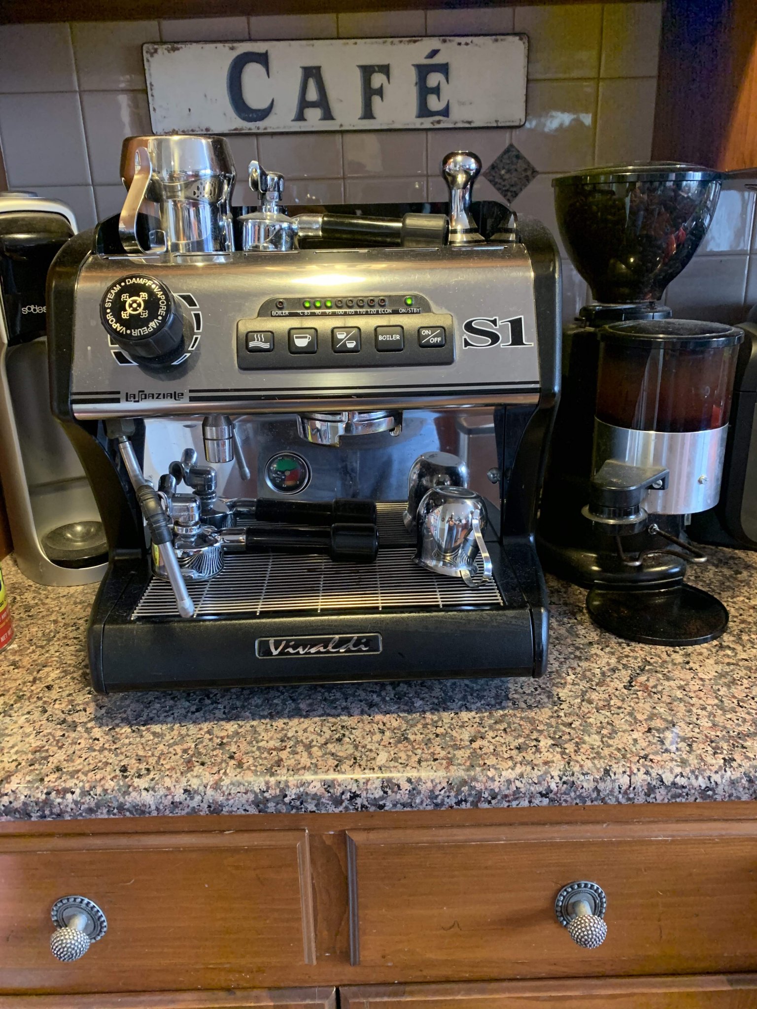 la Cimbali Jr grinder, and a Isomac Zaffiro machine here
