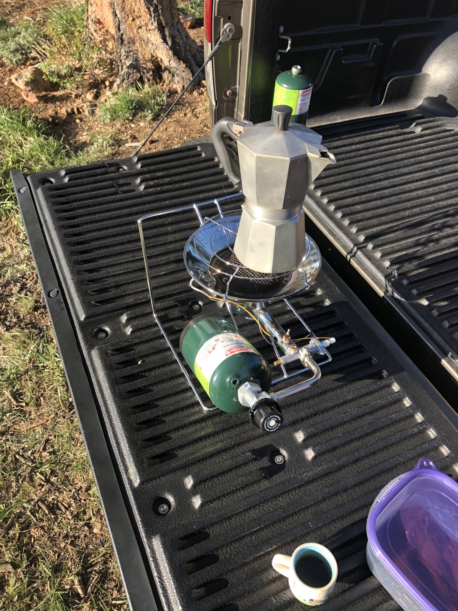Was testing out how the area heater would work for my coffee maker, but I nornally use a msr pocket rocket for coffee. Much more fuel efficient and smaller in size.