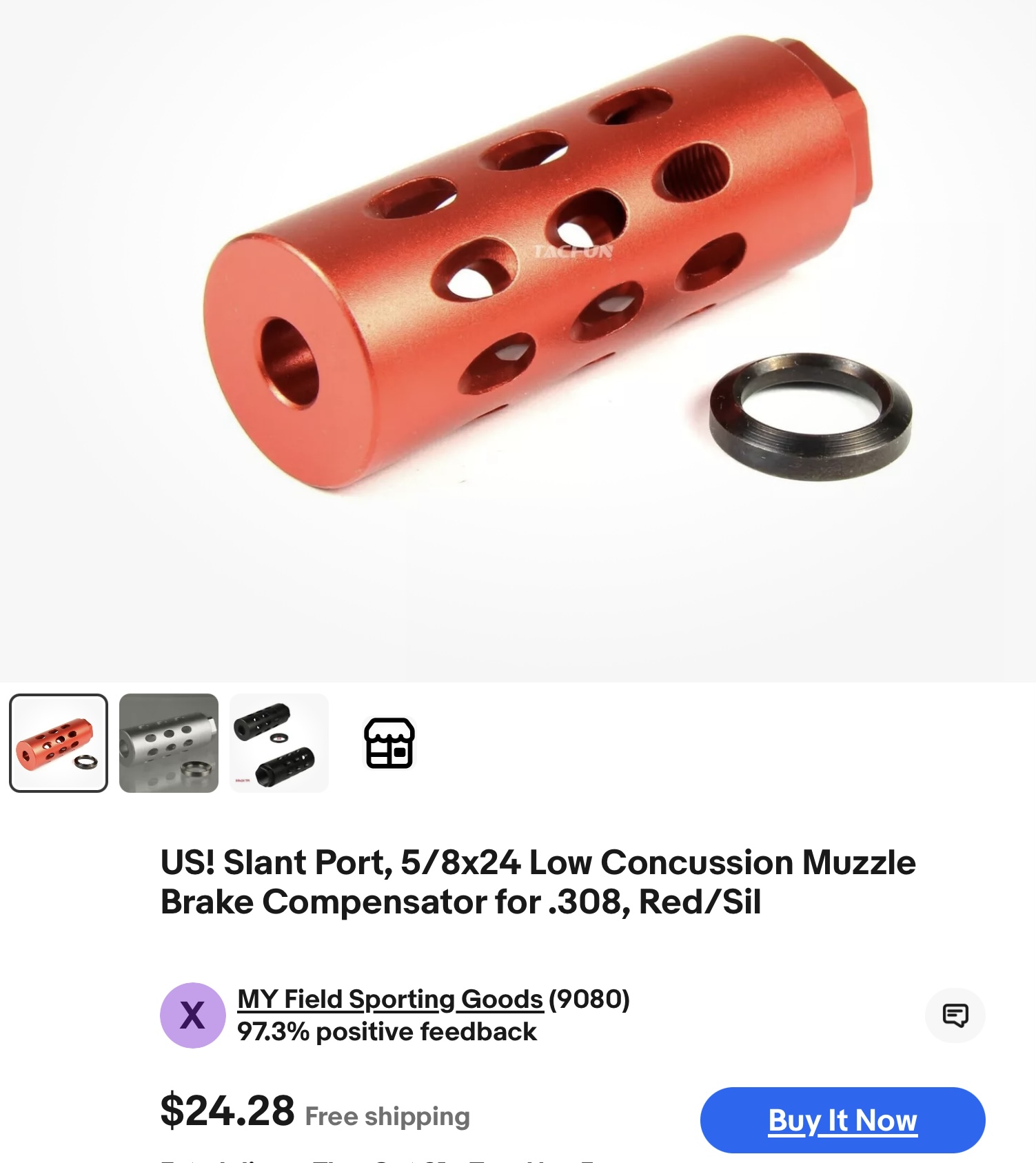 Browsing eBay for a specific brake today and noticed this amazing new bit of kit. Check out those ports. When your gun is shooting too soft and you need just a little bit more recoil, this little gem fills the bill. Maybe it’s a muzzle “break”.