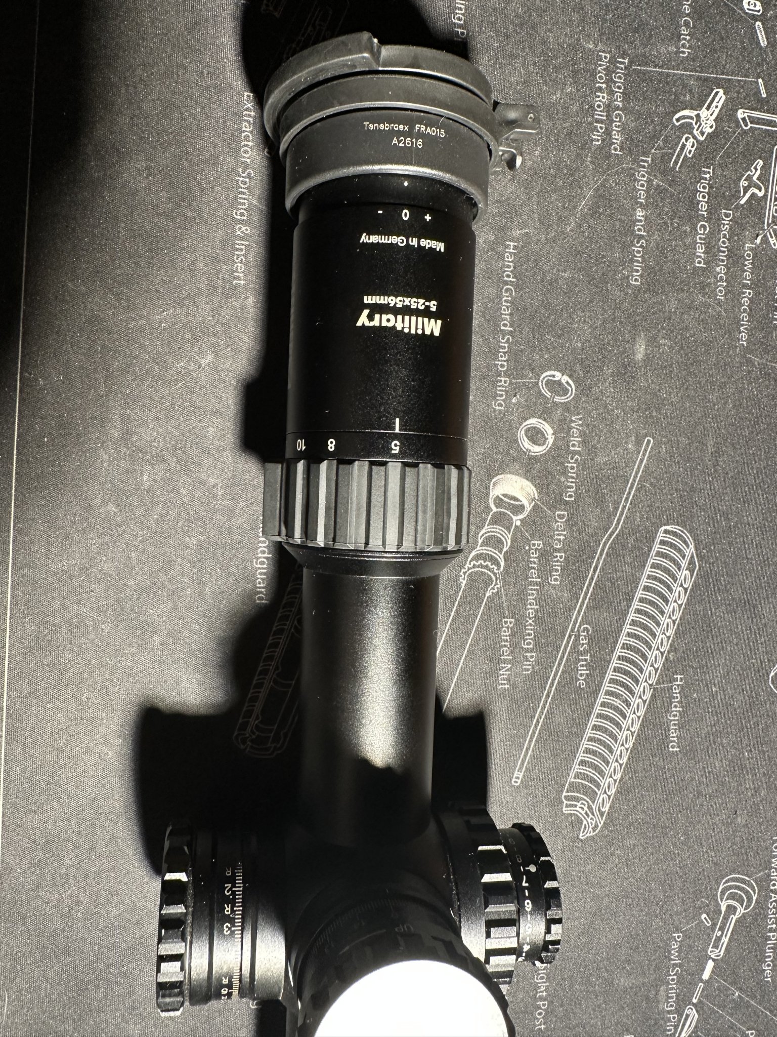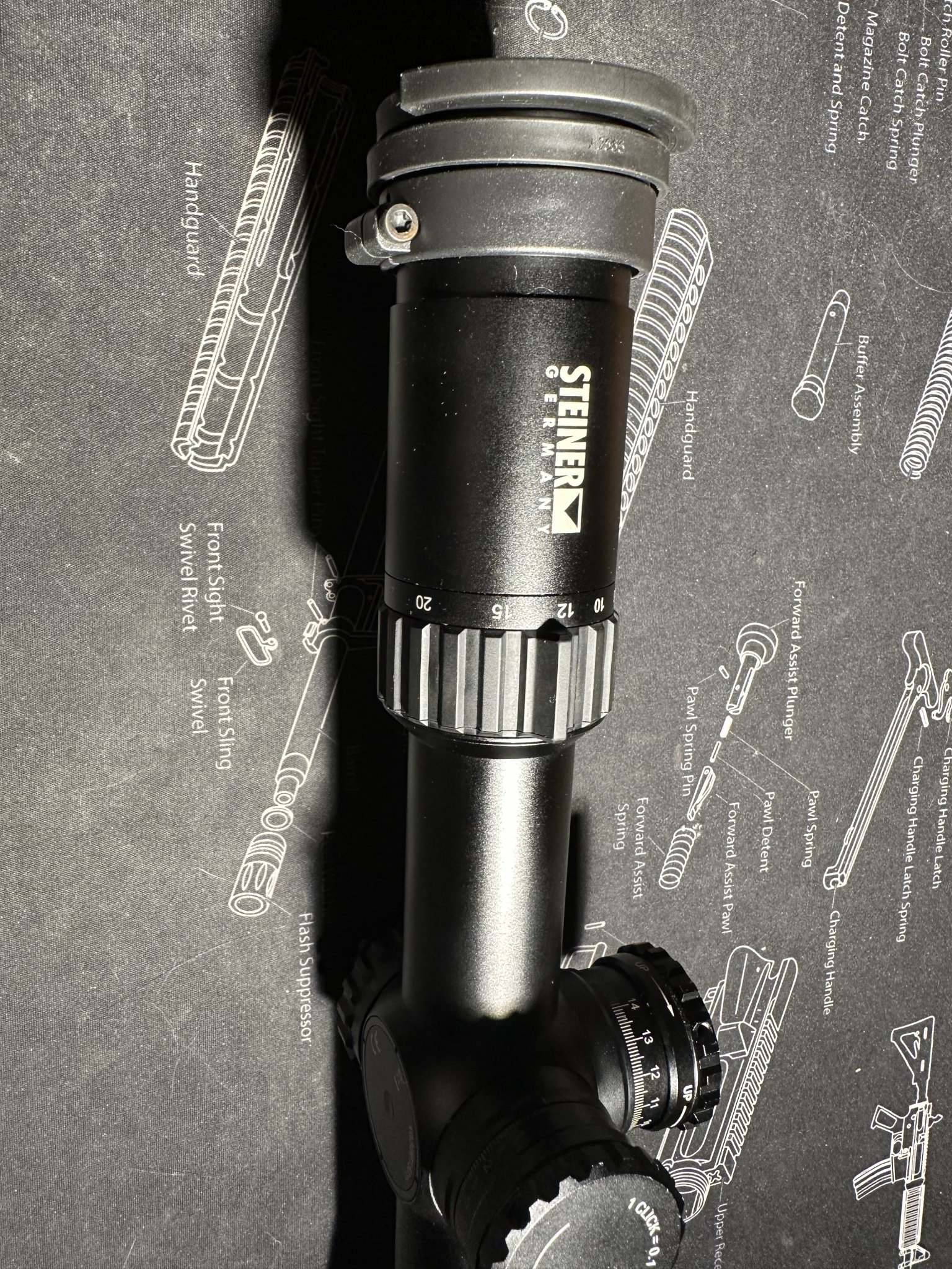 For Sale: Steiner Military 5-25x56, MSR reticle, Mil/Mil, CCW, Tenebraex covers. Minor field wear but overall very nice, clean glass, see photos for details. $1,675 Shipped. PayPal, Venmo or Zelle.