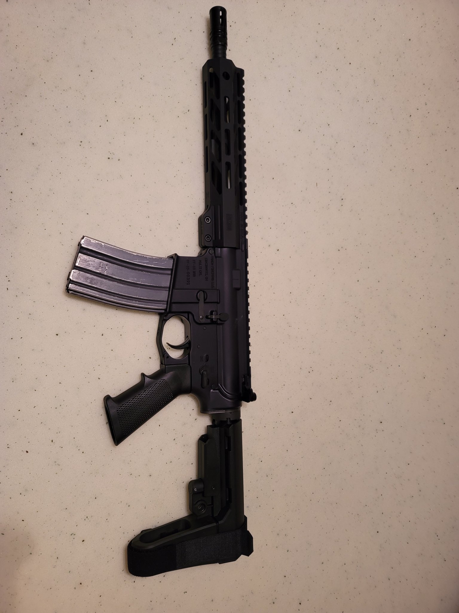 11.5" barrel, SBA3 brace. I have 20 subs and 20 supers I'll include.