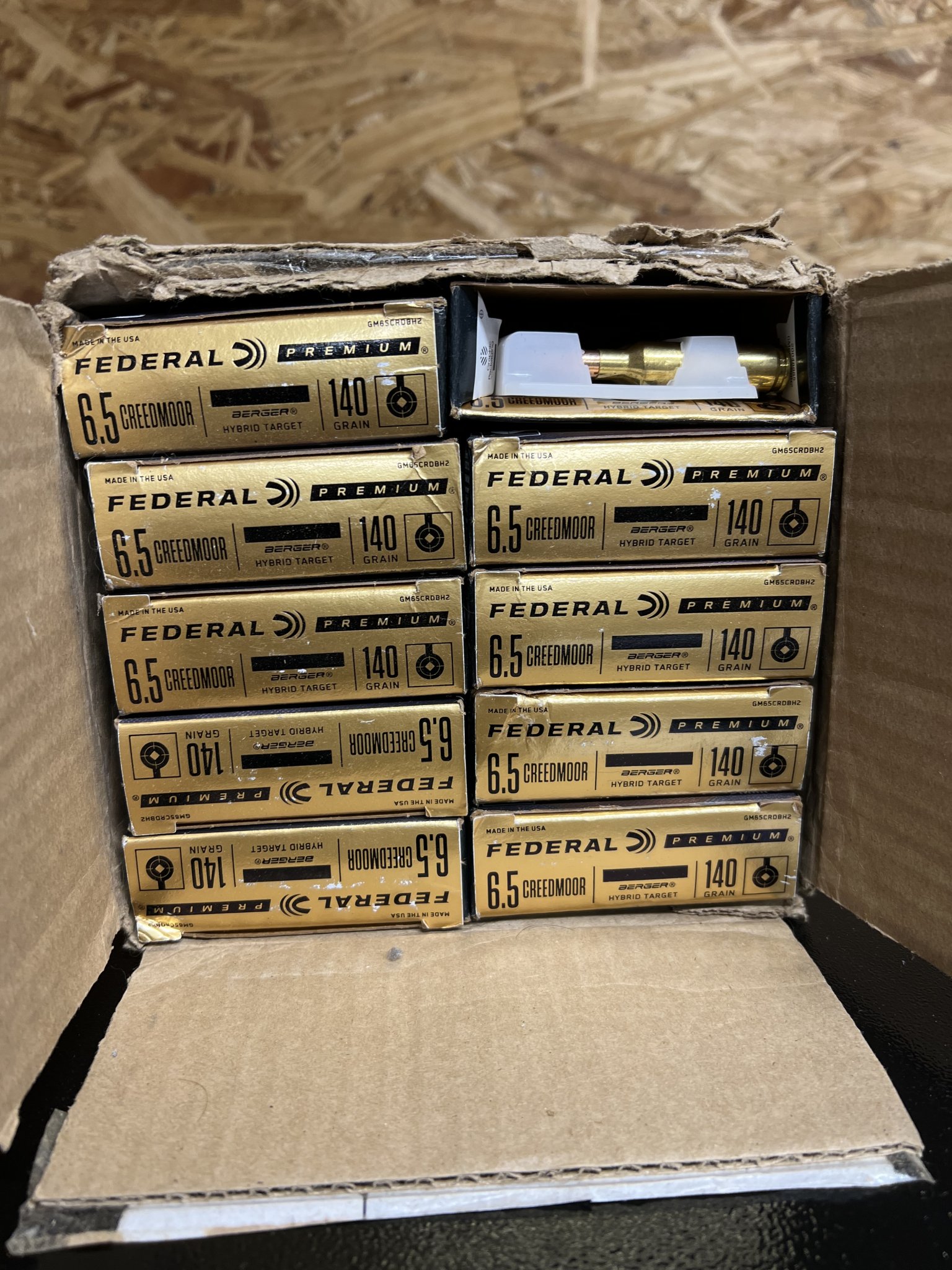 190 rounds of Federal Gold Medal Match 140gr Berger hybrid ammo. Same lot, $300 shipped.