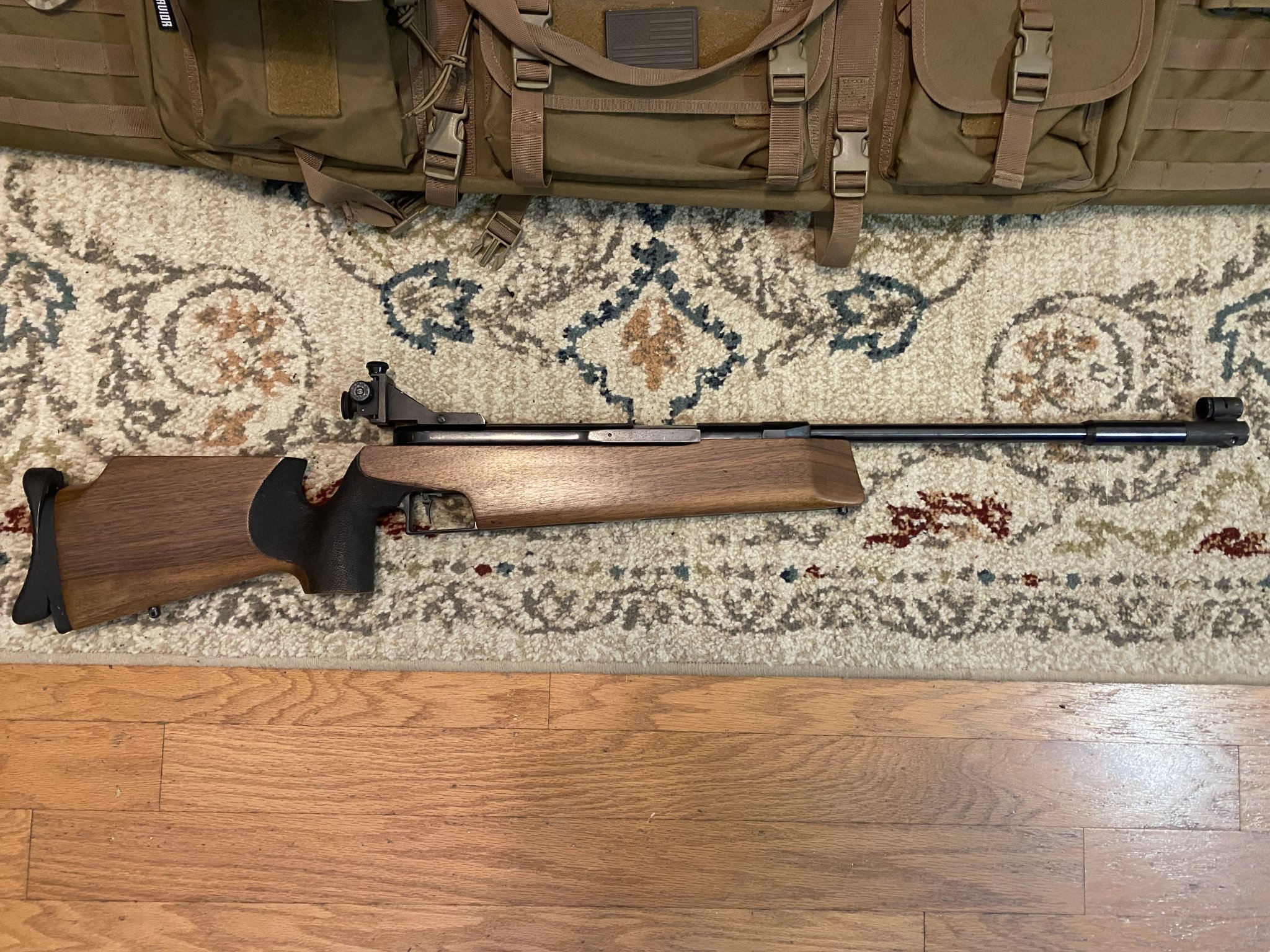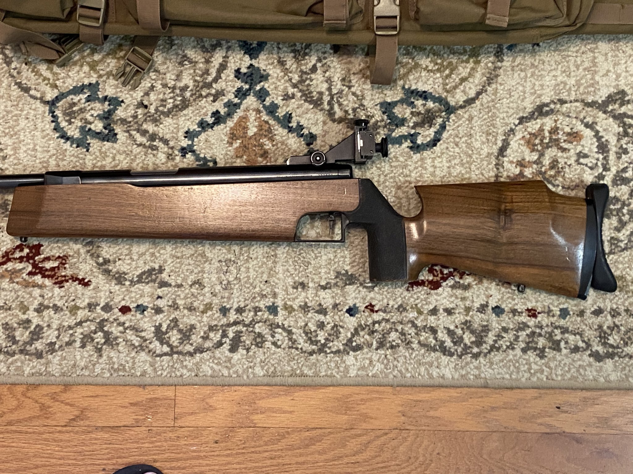 These were an Olympic grade pellet rifle in the early 80s and will punch a single hole at 20 meters. Out of nostalgia, I purchased this one when I taught my son to shoot 13 years ago. It functions flawlessly. Piston is still pretty fresh though I haven’t chronographed it. It also includes a new piston cup as well as a few extra front sight inserts. If you are unfamiliar with these, it’s a single shot side lever. .177cal pellet. Designed specifically for 20meter shooting. Weighs about 10lbs