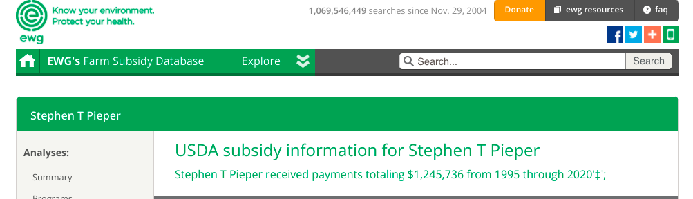 https://farm.ewg.org/search.php Plug in the name of a rancher or farmer near you and see what subsidies they get.