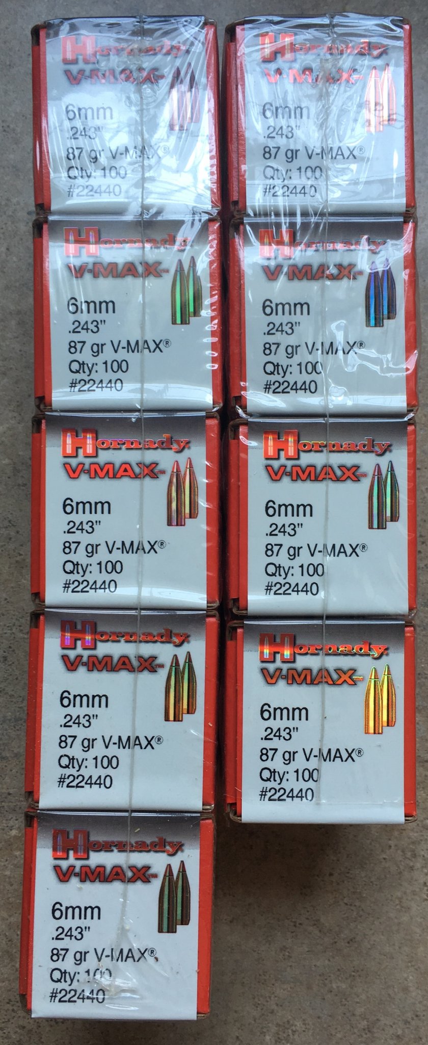 Qty 900 --- Hornady V-Max 87 gr # 22440 --- $17.00 / per hundred ----> SOLD
