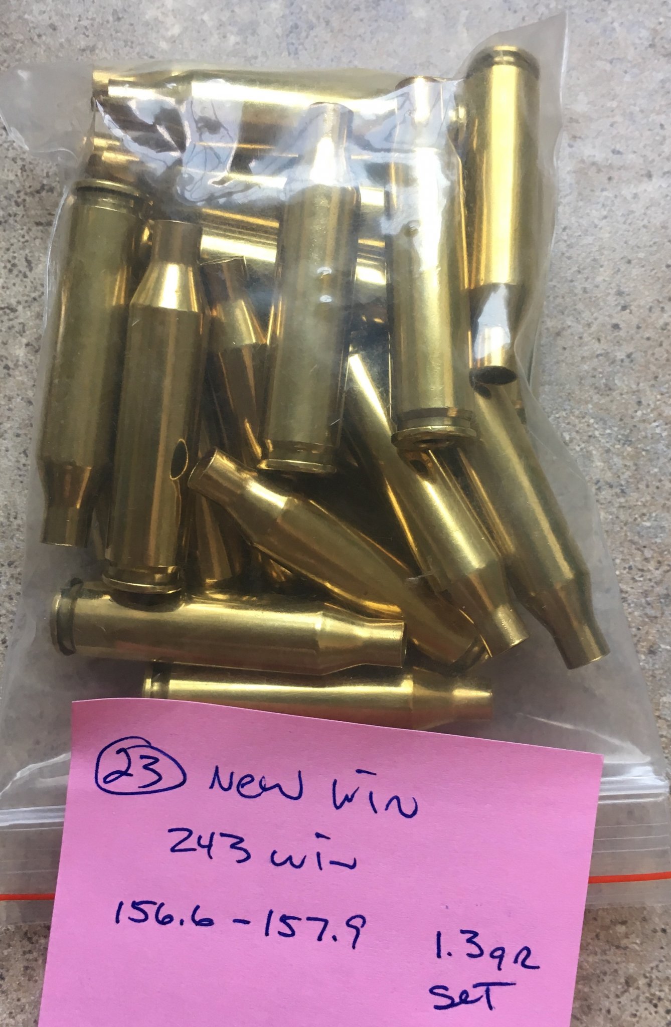 Qty 23 --- .243 Win --- New Win cases - Weight Sorted Set: 156.6 to 157.9 (1.3 gr set) --- $8.00 --> SOLD & SHIPPED blairmckenzie1