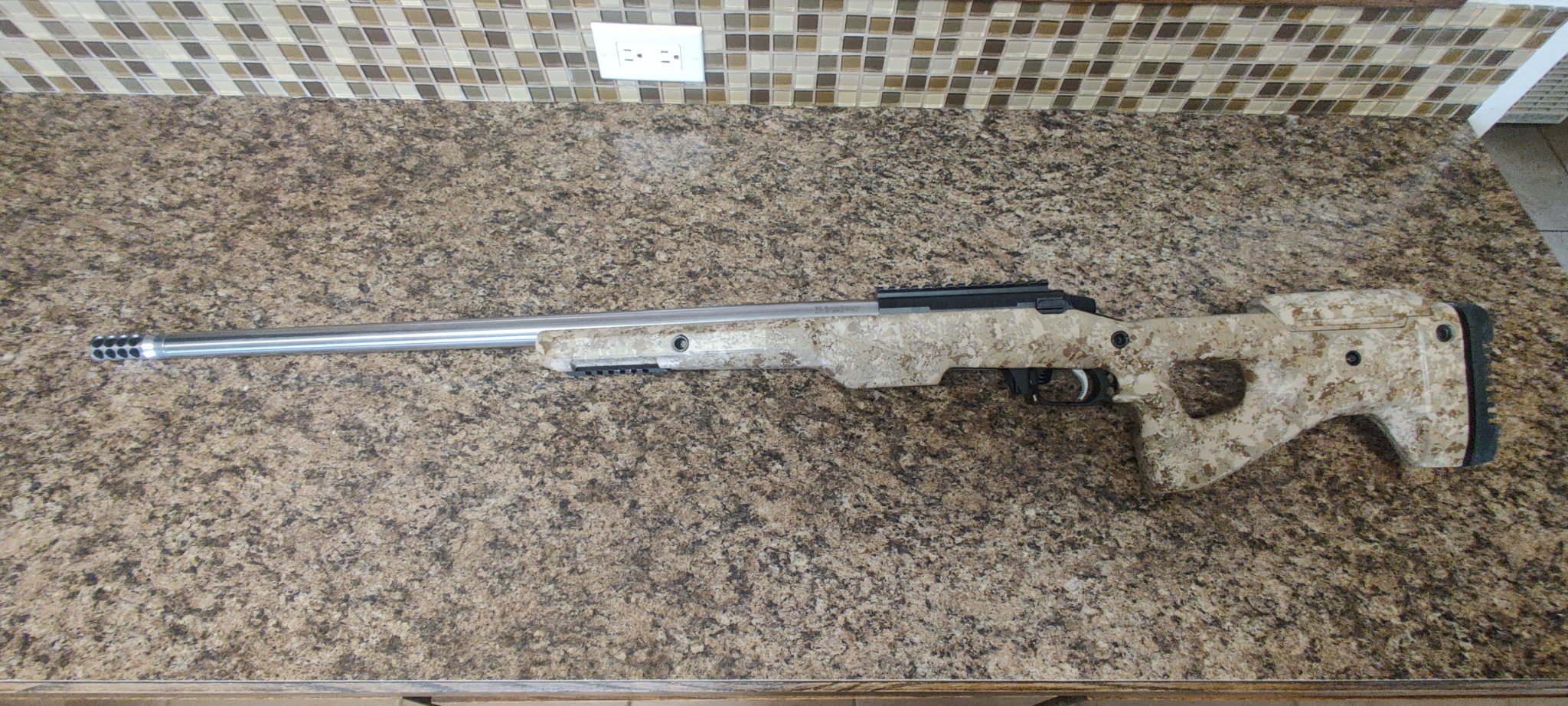 KMW Sentinel bedded for Impact Short action $1000 shipped, Hunts Long Range Hawk Hill 25 Creedmoor 26" barrel $720 shipped. Has 30 rounds on it. Tubb Mini Brake $100 shipped. Impact 737R AW cut $1300 shipped Impact SOLD