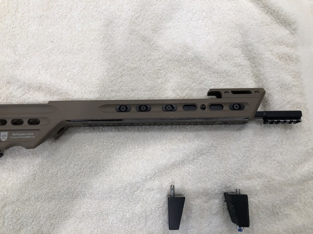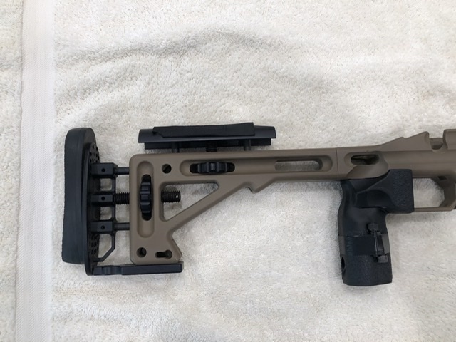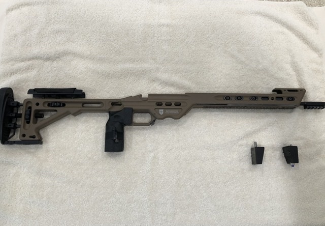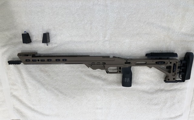 MPA Competition chassis in FDE for R700 RH SH action with mag well cut and dove tail cut. Used and has some scuffs. But not bad.