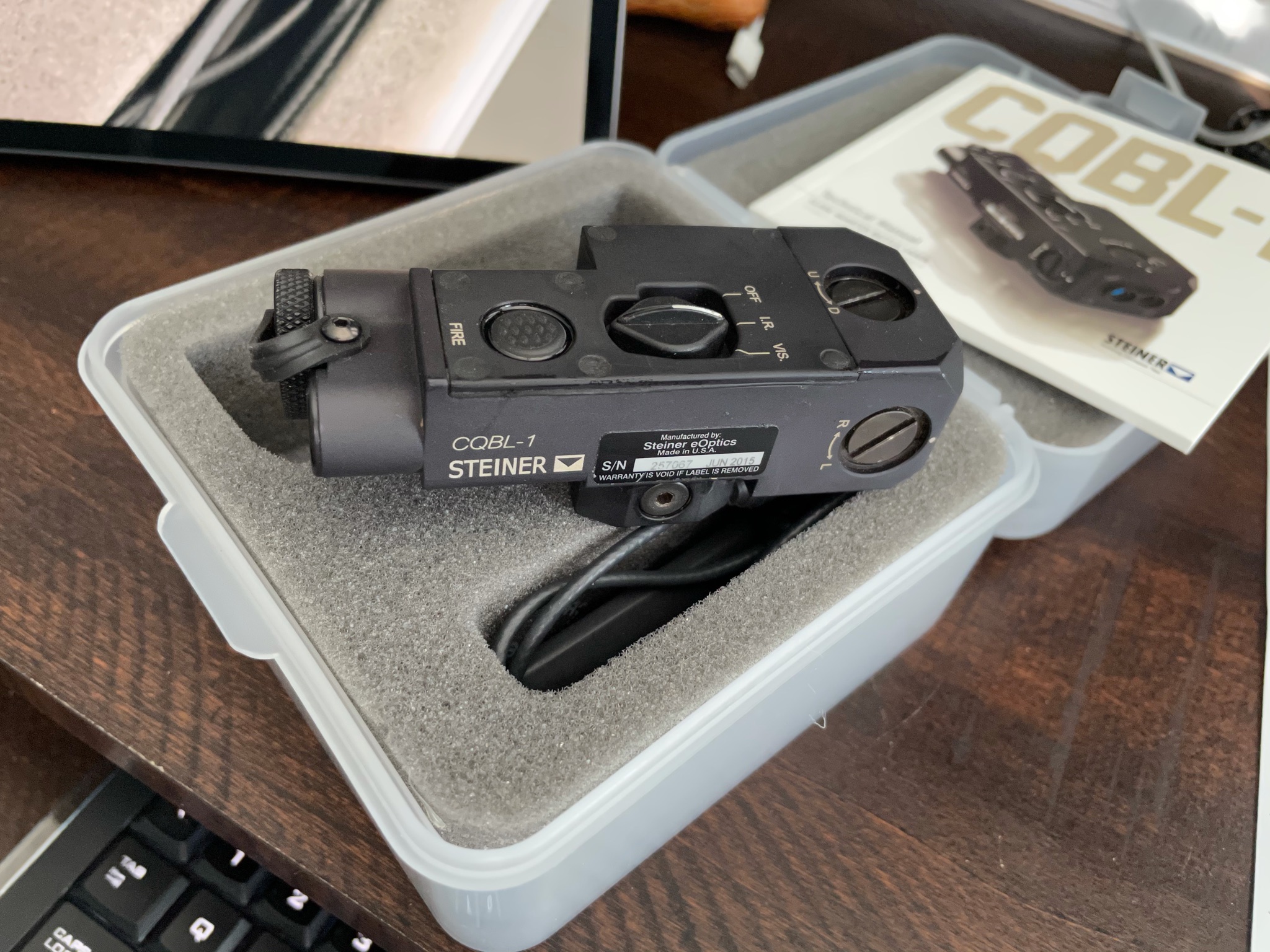 I have a Steiner CQBL-1 I purchased from a hide member last year - Item sold to me as NIB. I have not mounted or fielded the laser either - only test fired it off the deck / 100%