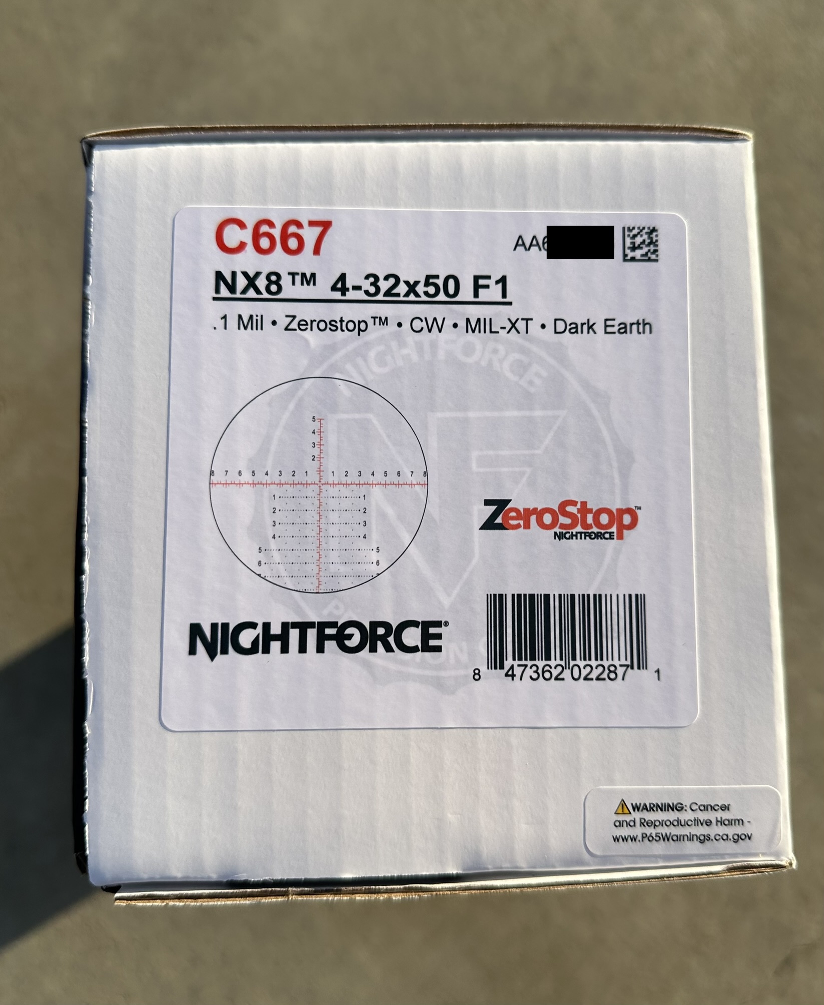 **SOLD** Up for sale, New in Box NightForce NX8 4-32x50 MIL-XT Reticle in the new Dark Earth. $2000 Shipped in the US.
