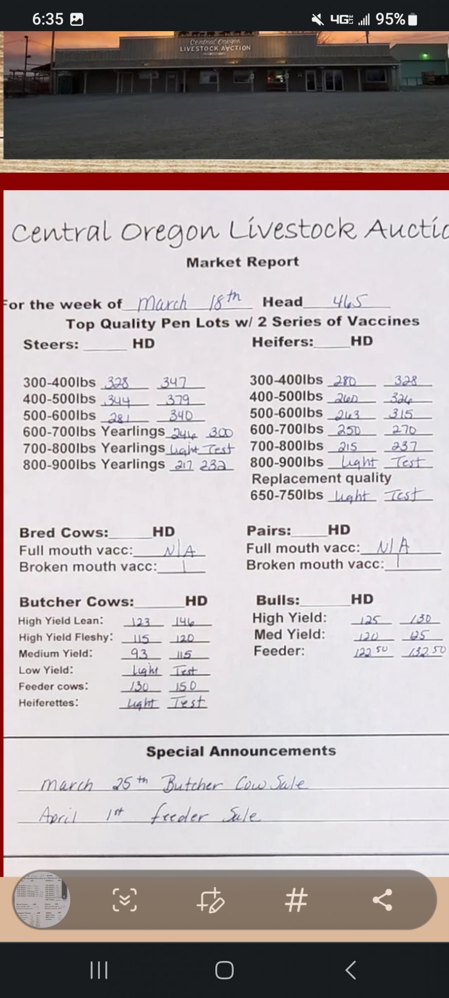 But weaned calves bringing over $2000 and bred cows