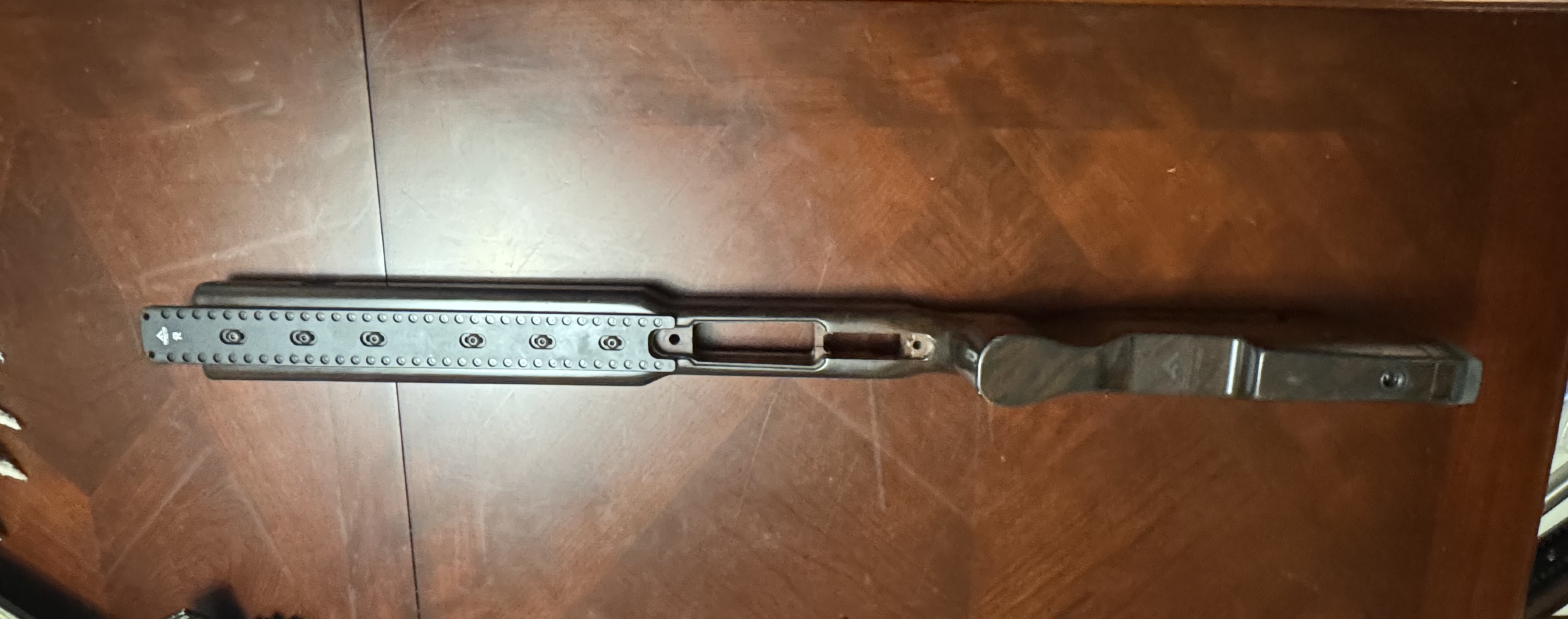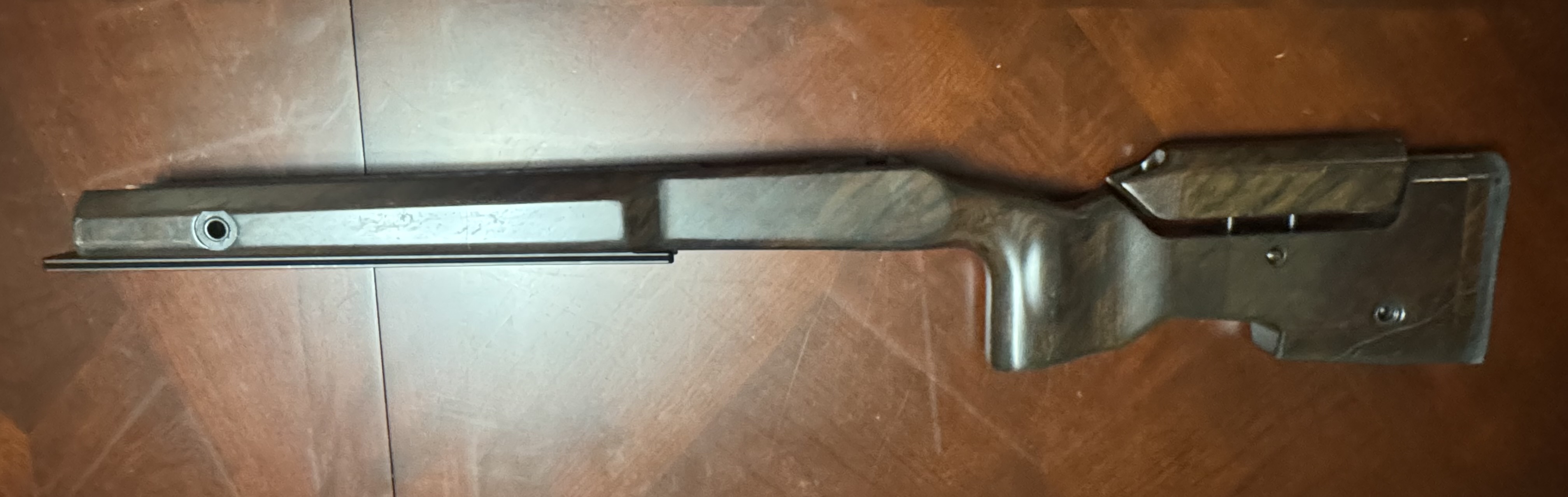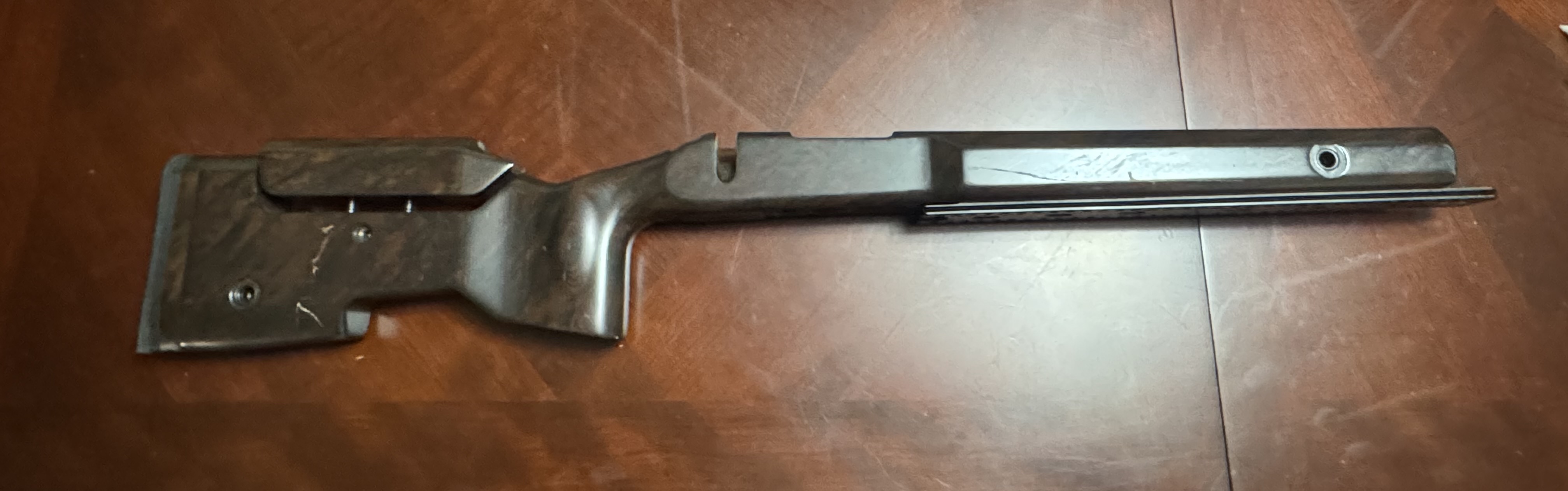Foundation Centurion in dark distressed for Impact 737. Comes with Hawkins M5 bottom metal, Arca rail, and gray ops bag stop. Stock has some scuffs on it, more noticeably toward the rear.
