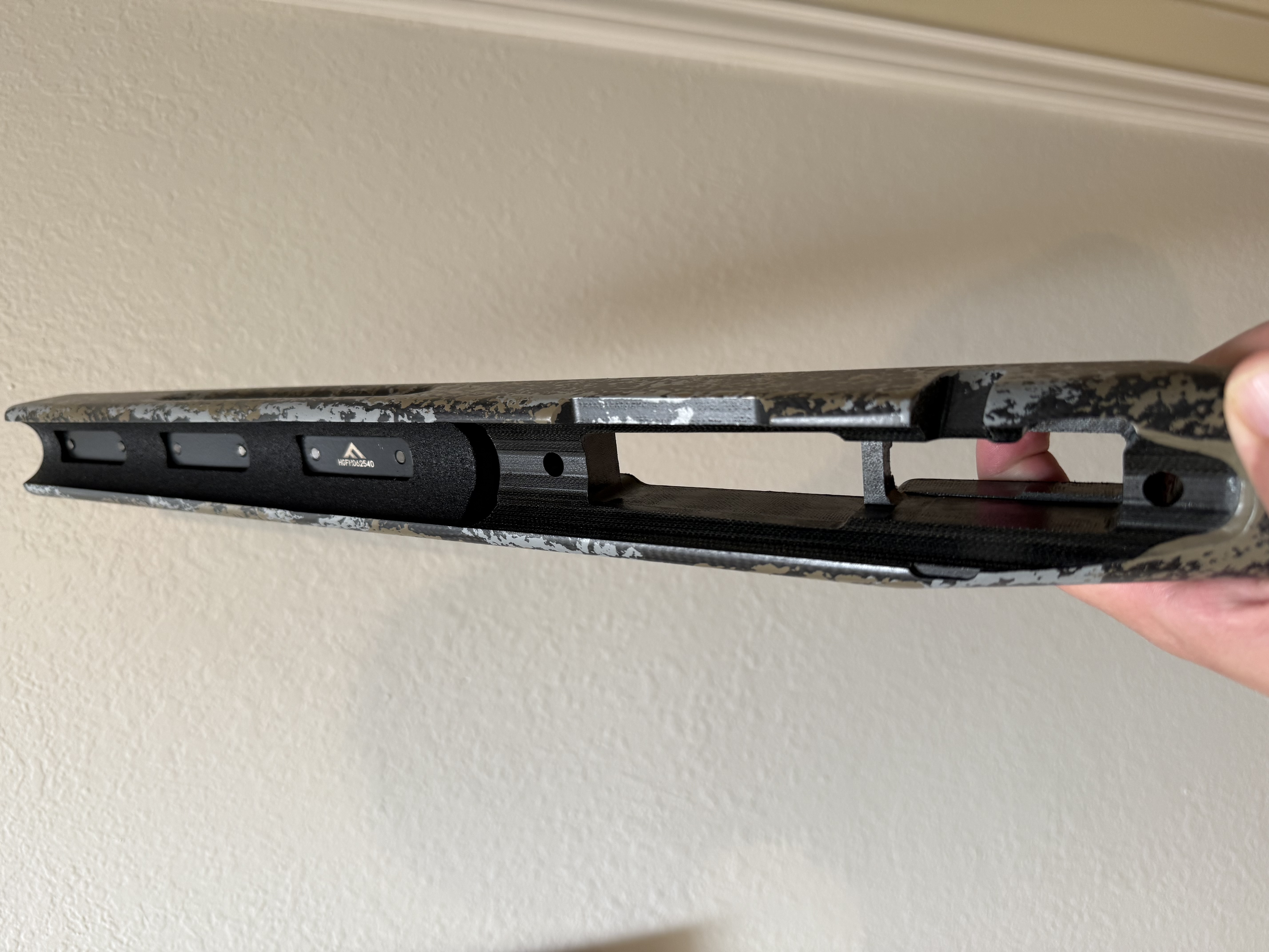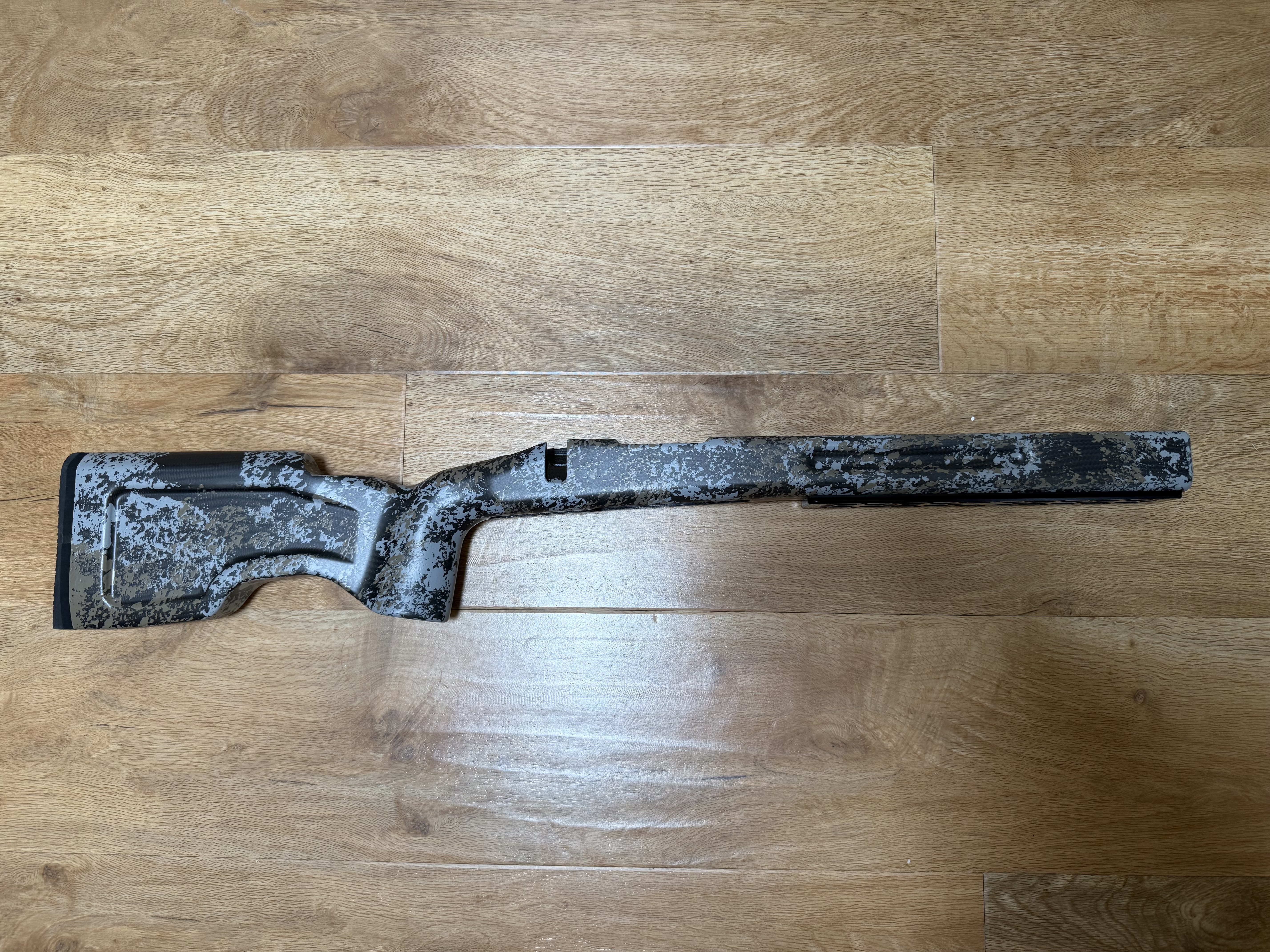 Inletted for Lone Peak Fuzion SA. Never had an action in it. Full length arca. Forend and buttstock flush QD cups on left side. Foundation Hunt paint. $950 shipped.
