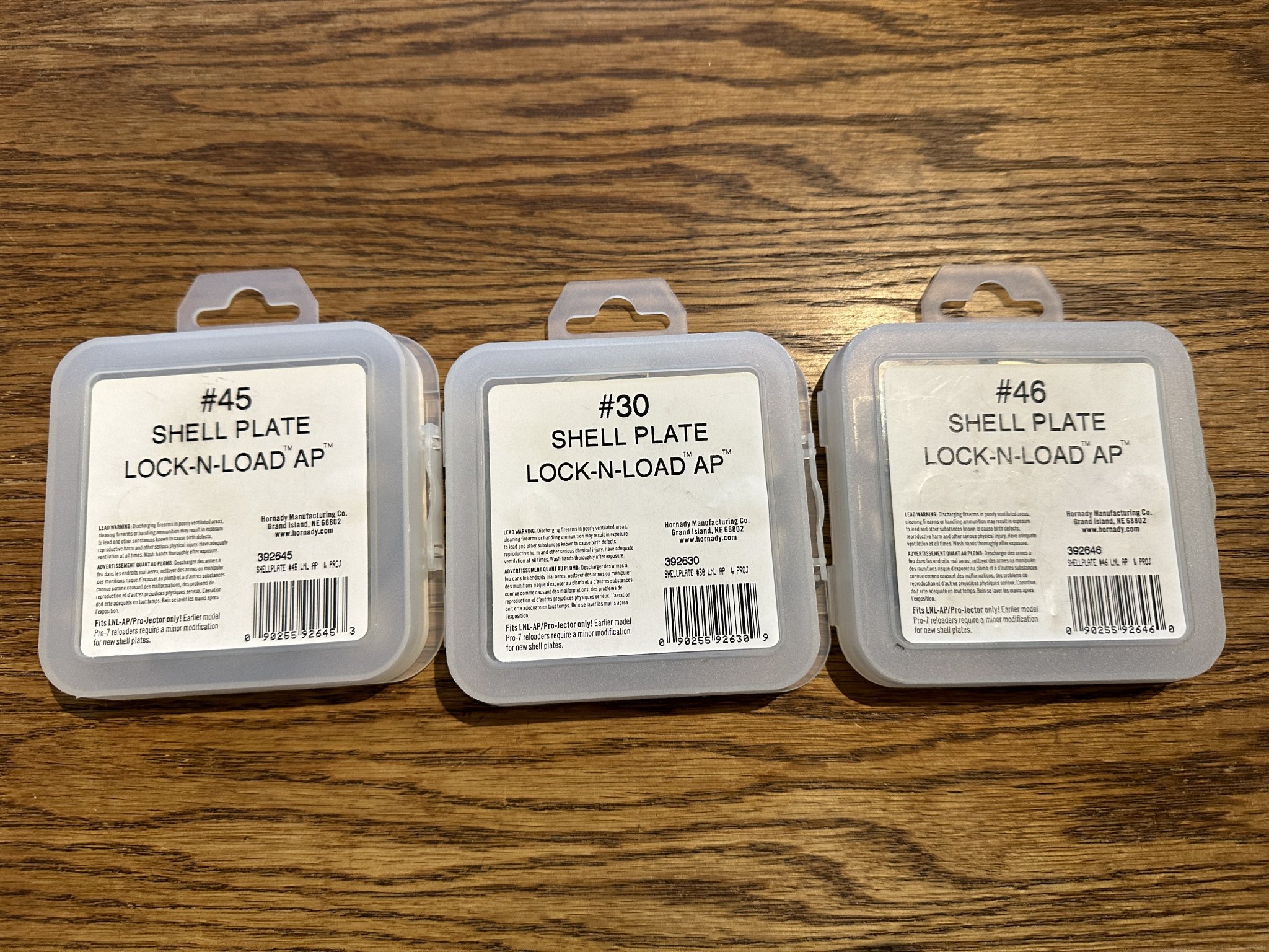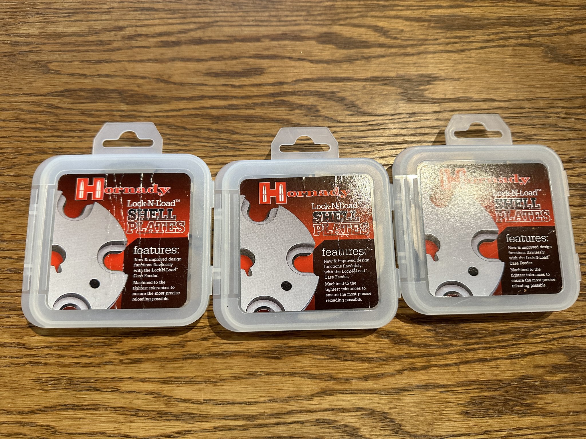 I have 3 Hornady Lock N Load AP shell plates that I no longer have a use for. Instead of haggling over them how about Ill give them to someone who can use them. I'm asking that you need them and not just take them because I'm giving them away. All I'm asking is $5 for the ride. They are modified with the cut for the auto ejector.