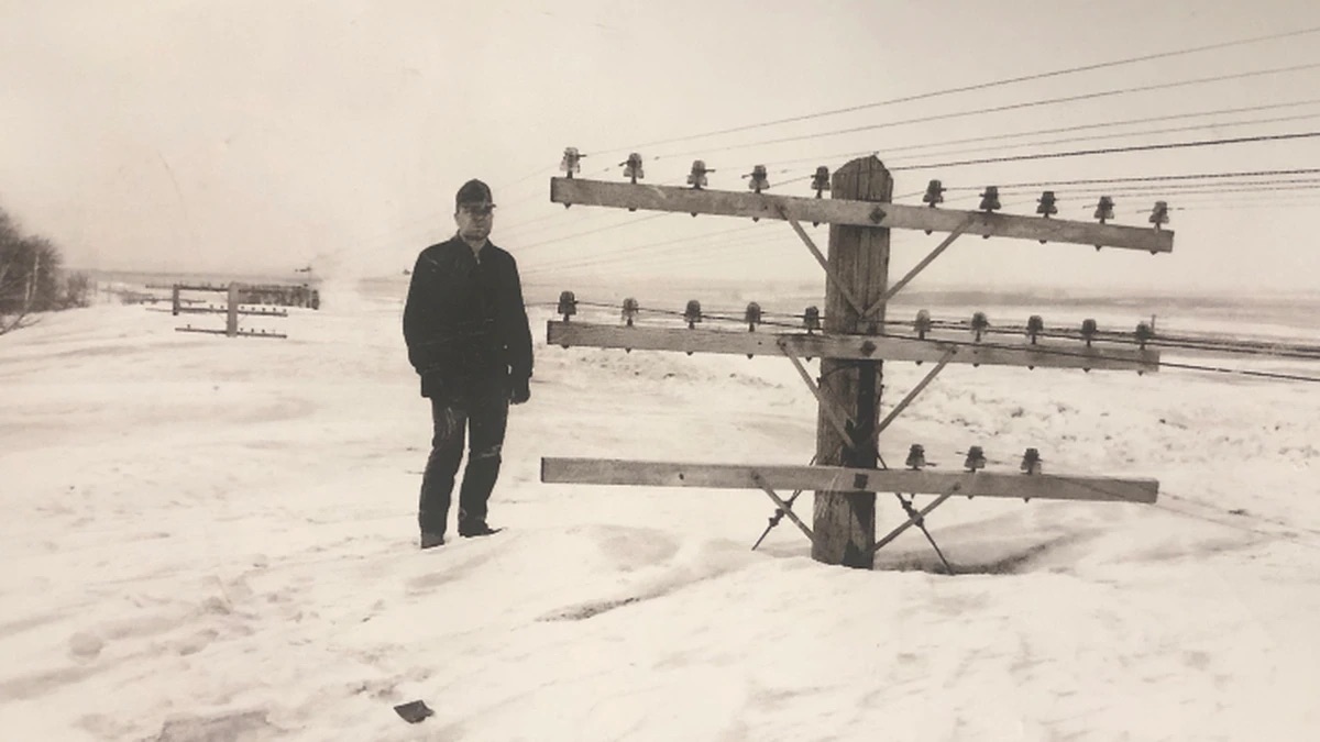 Here’s one of many crazy blizzards in ND. Three day blizzard in 1966, 30-40ft high drifts, 20-30” of snow, 70mph winds gusting up to 100mph, 74,500 head of cattle died. Dude is standing on a drift so high that he’s near the top of a power line pole. Look at the poles behind him.
