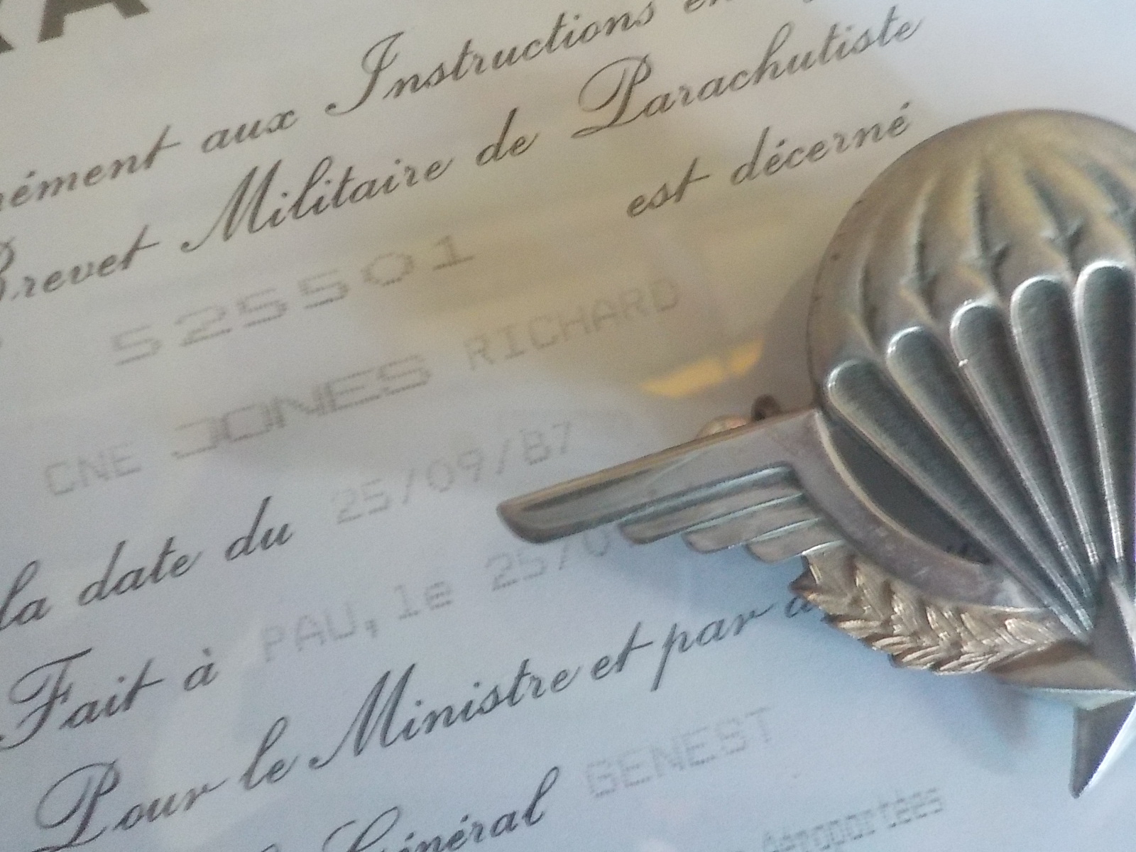 Carrying on the French Airborne tradition, French Parachutist number 525501 serial numbered wings.