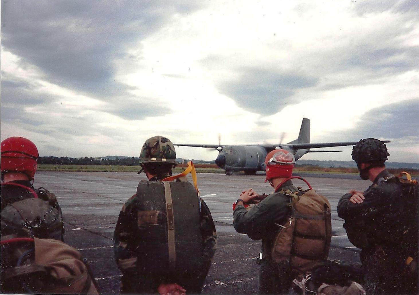 French C-160 Transall. Red bunny helmet is a French HALO jumber