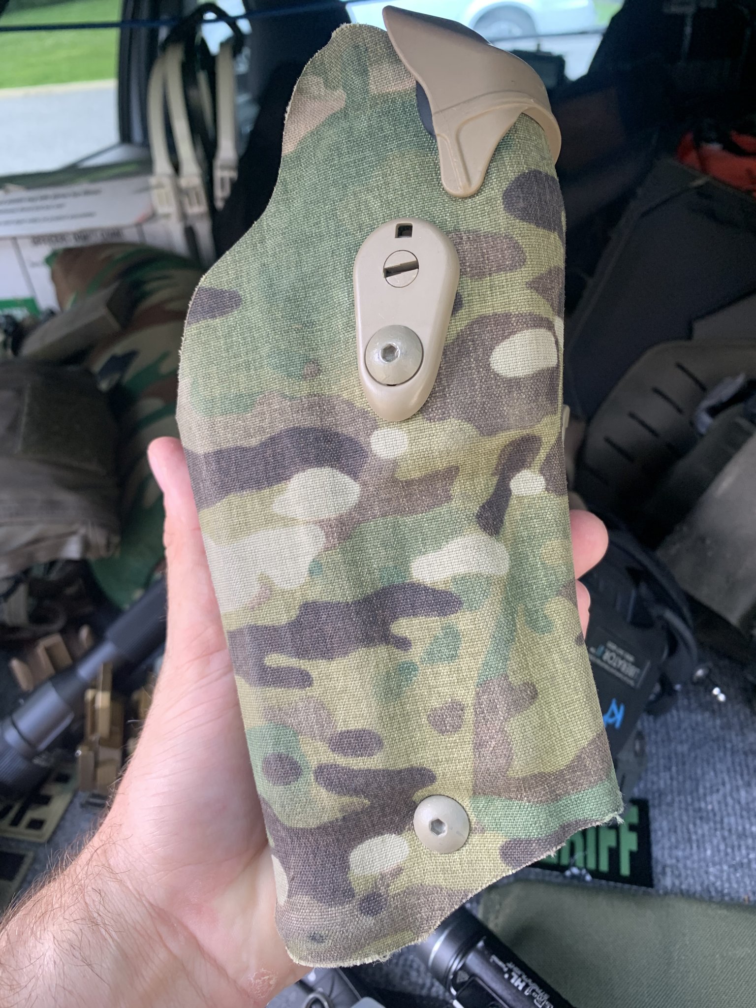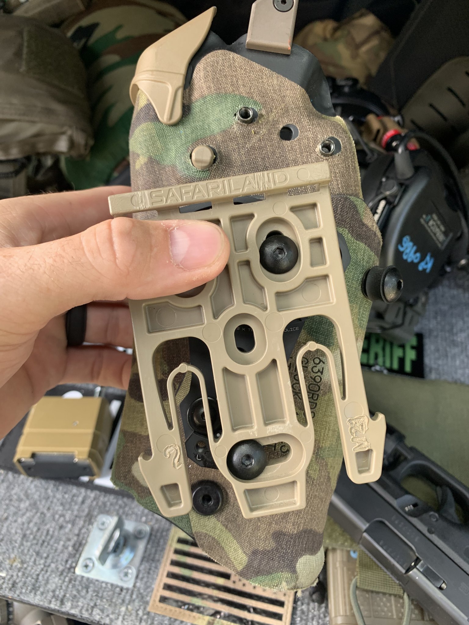 -Safariland UBL(mid ride/black) with QLS receiver plate(green) and leg strap(black)