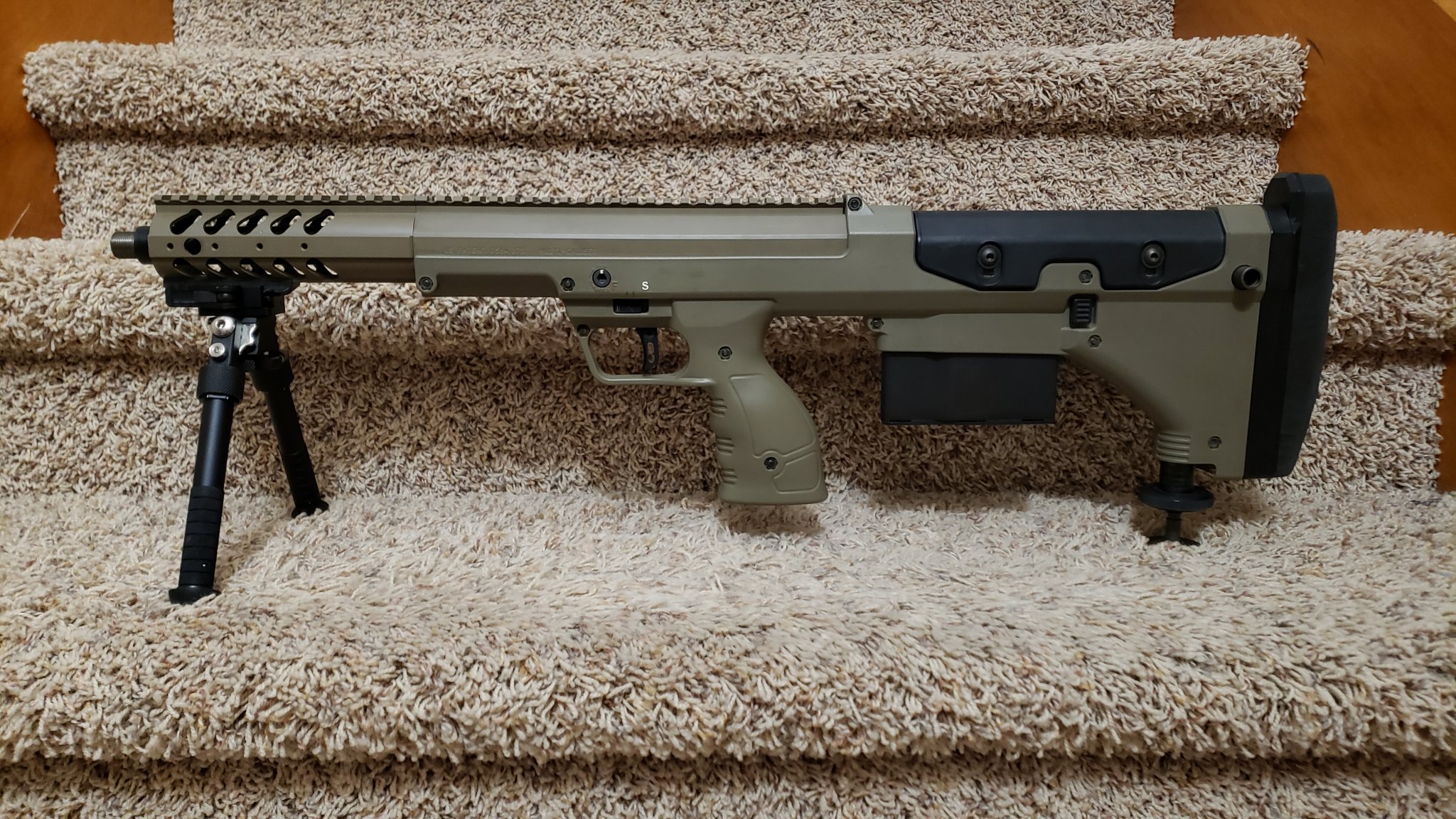 Fresh anodizing and cerakote from Desert Tech done earlier this year. I've shot it 0 times since it's been back. Barrel made by ES tactical. Its a 16" Proof stainless blank that has been cerakoted black. Threaded 5/8x24. Might have 250-300 rounds on it. Will come with