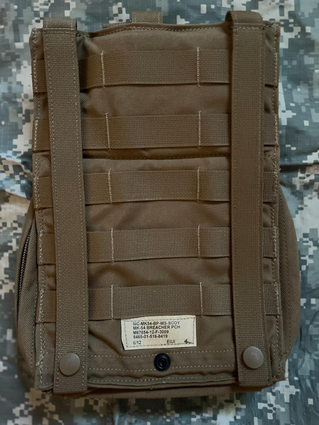 NEW Eagle Industries FSBE MK-54 Breacher Pouch, MOLLE. Color is COYOTE BROWN . Used by Marine Force Recon and other Special Operations Units. Heavy-duty, abrasion and water resistant 1000 denier Cordura ® nylon construction. Removable Det. Carrier. Elastic Strap to keep items secure.