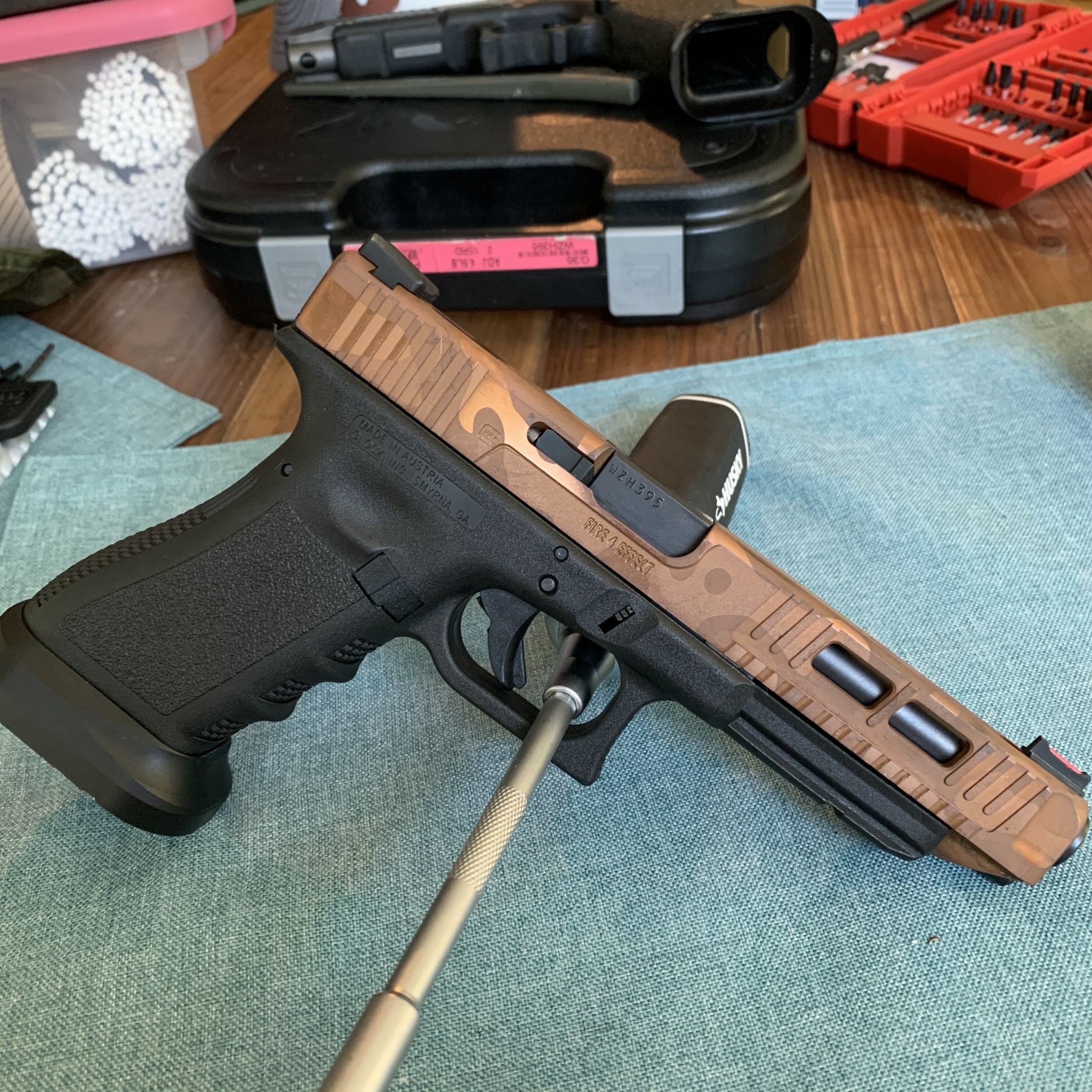 CustomGlock 35 gen 3 by fire 4 effect for local face to face sale. $1,400 my fiancé is shooting USPSA with me so I bought her a new OZ9 yesterday so I’m using funds to set her up for a full kit to shoot with.