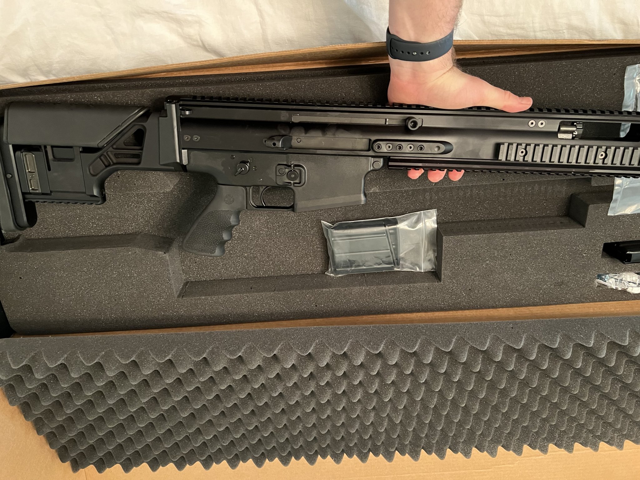 For sale is a new, unfired, FN Scar 20s Non Reciprocating Charging Handle version chambered in 308. Black. Comes with box and two mags (1 ten round, 1 twenty round).